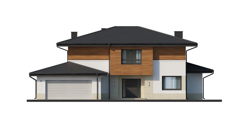 Dom o współczesnej bryle, nadążający za trendami ciekawą elewacją z elementami drewna i kamienia oraz dużymi przeszkleniami świetnie wpisujący się w stylistykę zarówno miejską jak i terenów słabiej zaludnionych. Salomon jest domem piętrowym, stanowiącym alternatywę dla domów z użytkowym poddaszem, skierowanym do lubiącej przestrzeń 4- 5 osobowej rodziny. Parter domu stanowi otwartą przestrzeń, w której są czytelnie wyodrębnione strefy: wypoczynkowa( salon z kominkiem), jadalna ( miejsce na duży stół oraz bufet) i kuchenna (z wyspą i spiżarnią). Każdą ze stref można łatwo zamknąć drzwiami przesuwnymi zyskując w miarę potrzeb wymaganą intymność, lub duże, reprezentacyjne i doskonale nasłonecznione pomieszczenie. Znajdujący się na tym poziomie dodatkowy pokój może pełnić różnorakie funkcje od sypialni poprzez gabinet i pokój telewizyjny do pokoju hobby. W części gospodarczej parteru na uwagę zasługuje przejście z garażu do wiatrołapu dzięki czemu łatwiej zachować w domu odrębność stref. Piętro, to strefa typowo prywatna, gdzie znajdują się trzy przestronne sypialnie( w tym jedna z własną garderobą i łazienką) oraz garderoba i łazienka i pralnia dostępne z poziomu korytarza.