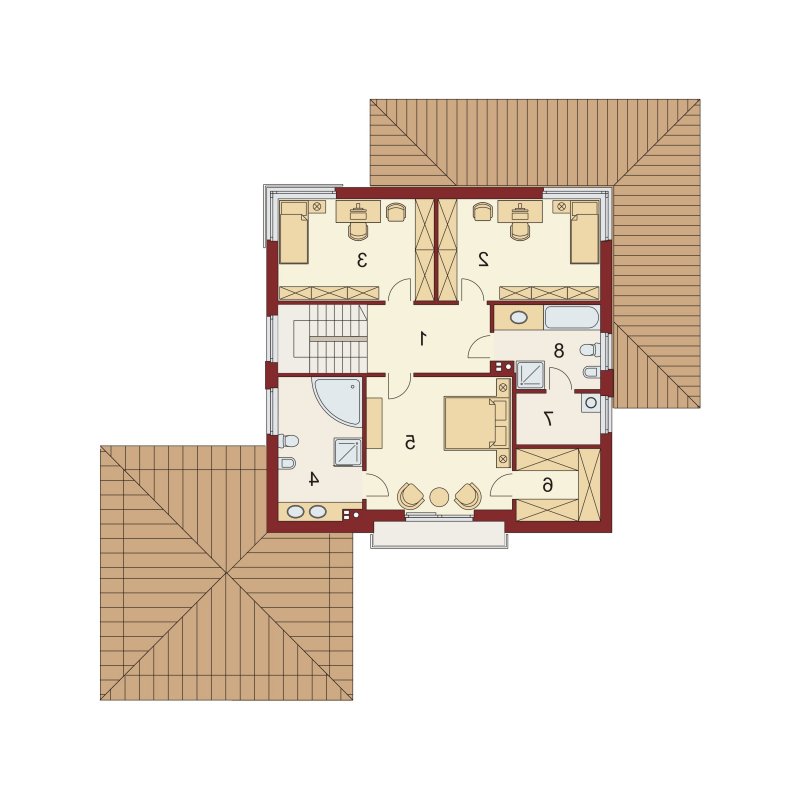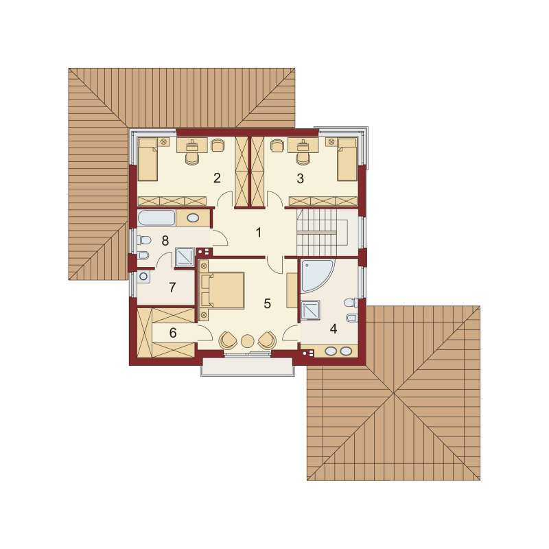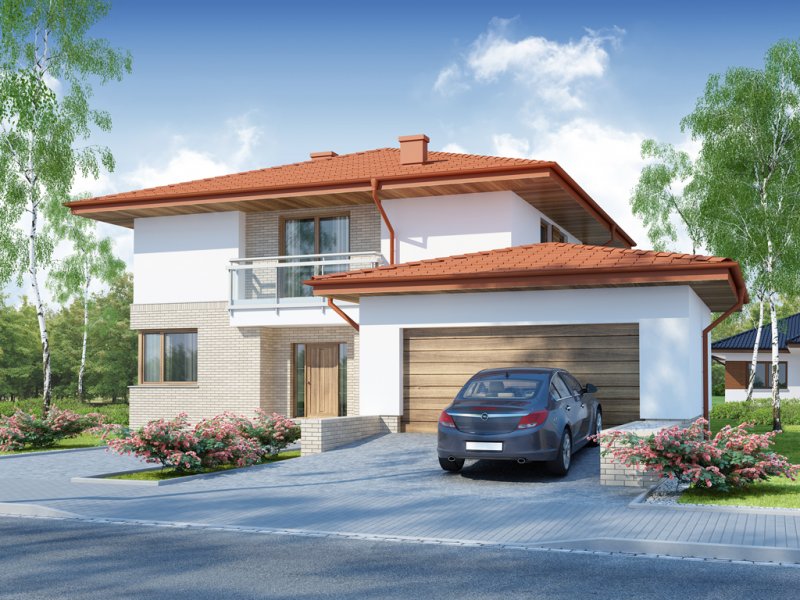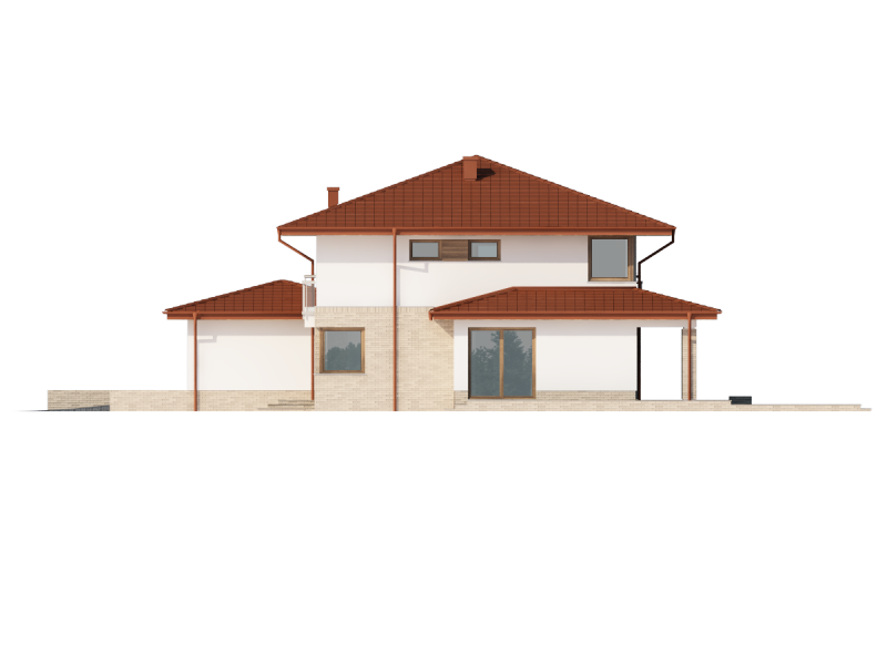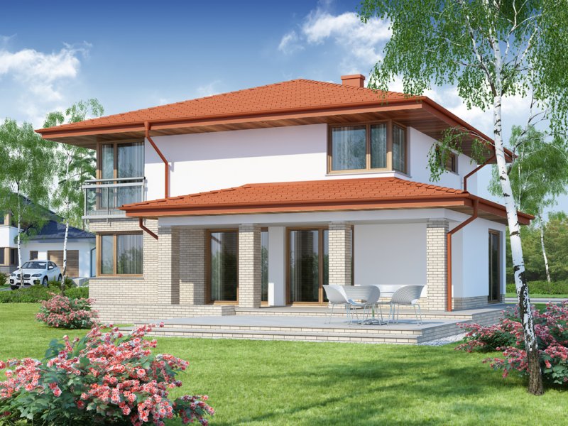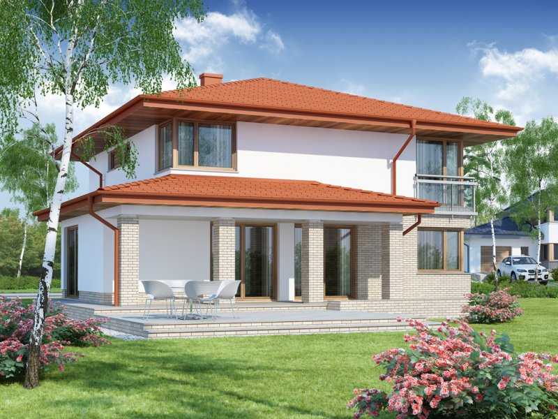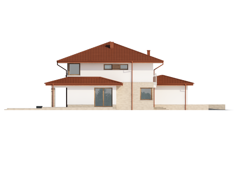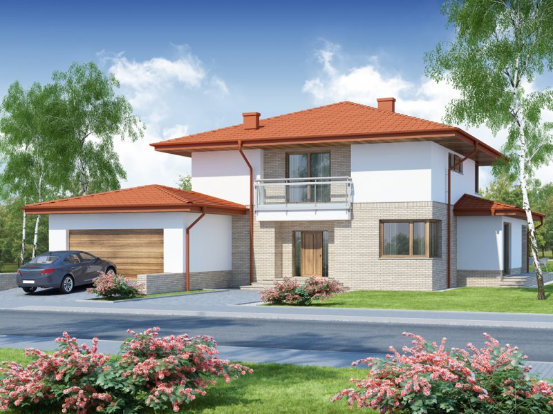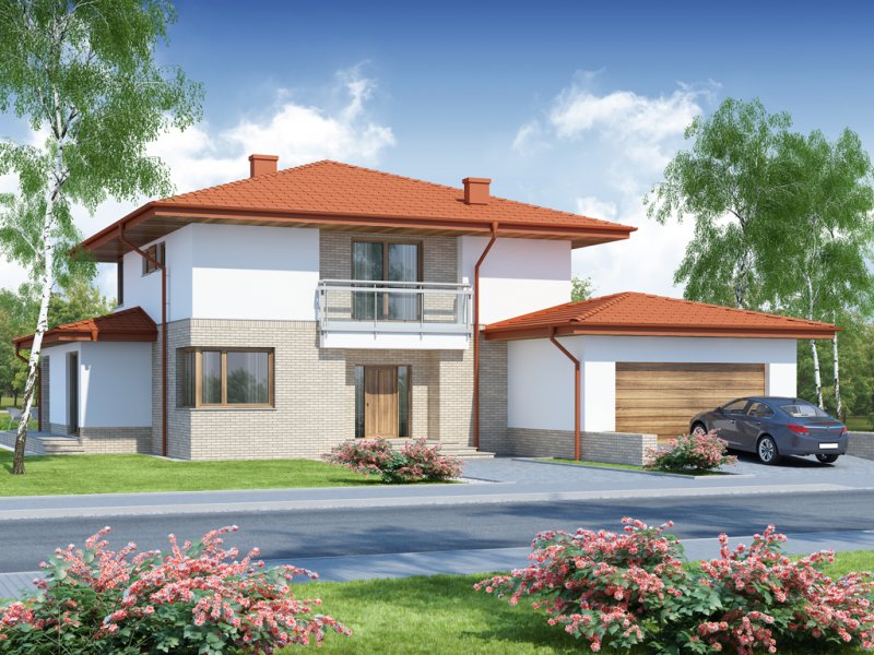 Sima 2 to wygodny, piętrowy dom przeznaczony dla 4-5 osobowej rodziny, o współczesnej bryle, z ciekawą elewacją z elementami drewna i kamienia oraz dużymi przeszkleniami. Jego dodatkowym atutem jest funkcjonalny układ wnętrza, z klarownym podziałem na część dzienną na parterze i część nocną na piętrze.