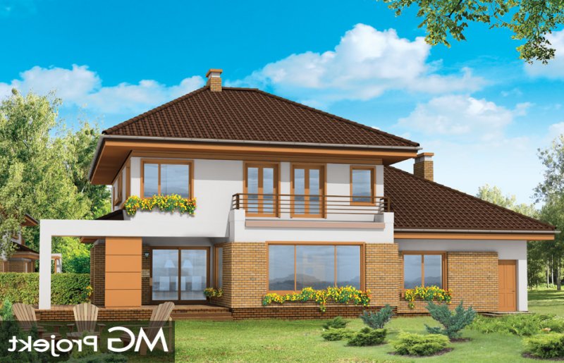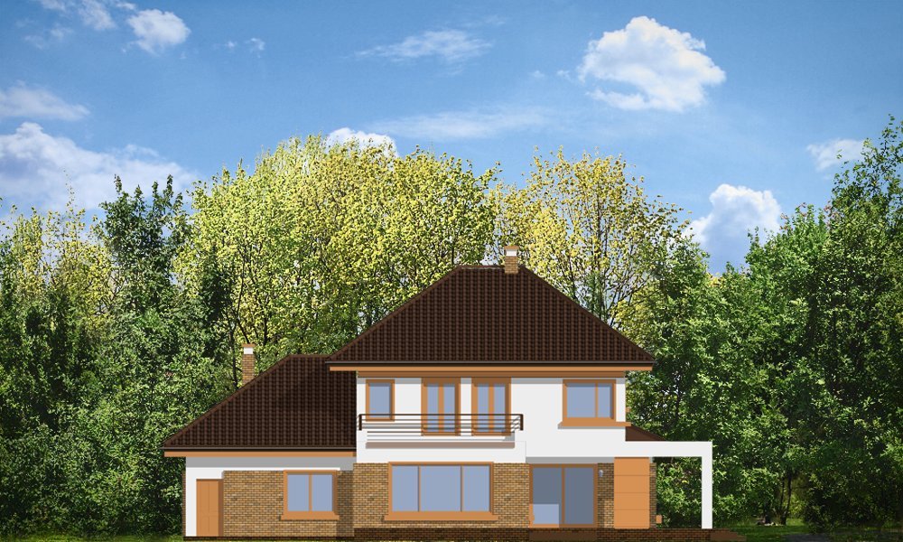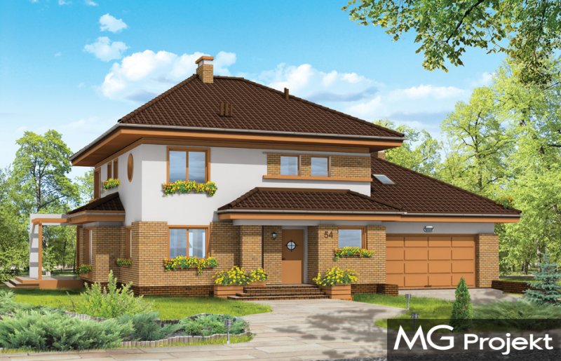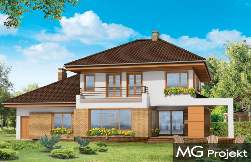 Słodki to uroczy, piętrowy dom dla rodziny 4-6 osobowej. Budynek powstał przez połączenie piętrowej części mieszkalnej i parterowej ze strychem bryły dobudowanego garażu. W projekcie to daszki, balkony, tarasy i pergole stanowią urozmaicenie oszczędnej bryły. Podział ścian domu na dwa poziome pasy obniża wizualnie piętrową sylwetkę domu. Wnętrze domu to jednoprzestrzenny parter, z salonem, jadalnią i holem. Na piętrze zaprojektowano sypialnie. Na parterze udało się wygospodarować dodatkowy pokój mogący służyć jako gabinet, lub dodatkowa sypialnia. Na parterze znajduje się również garaż i pomieszczenia techniczne. Na piętrze nad garażem powstała duża przestrzeń do dowolnej aranżacji. Szczególnie urokliwy jest w projekcie zadaszony taras z dużymi przeszkleniami z jadalni i salonu - stanowi on płynne przejście między wnętrzem a ogrodem. Pracownia posiada projekt w odbiciu lustrzanym.