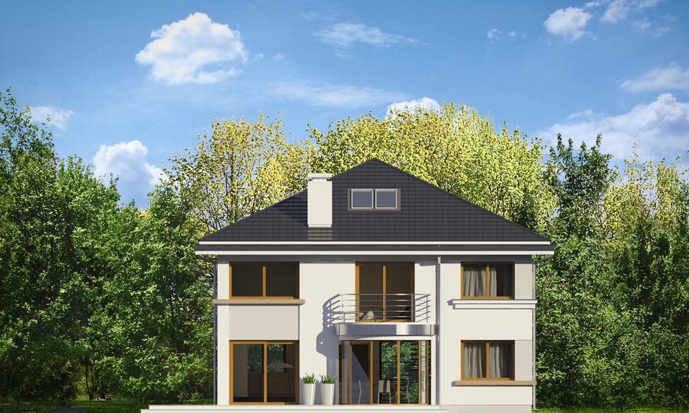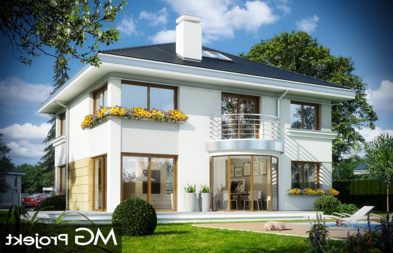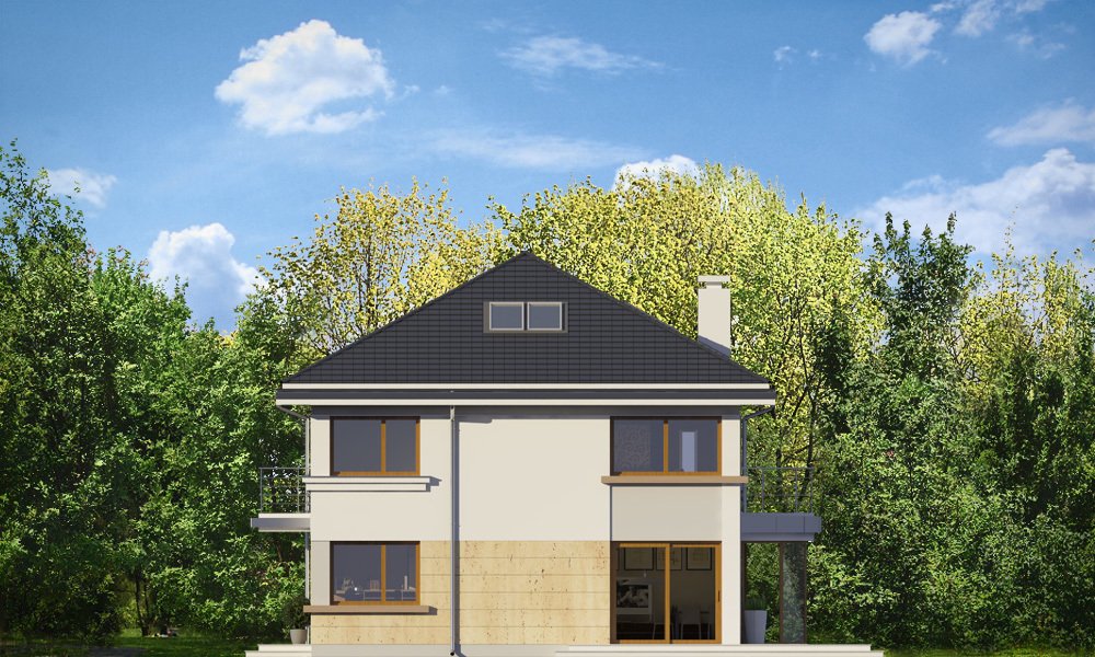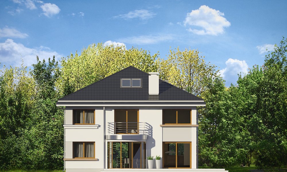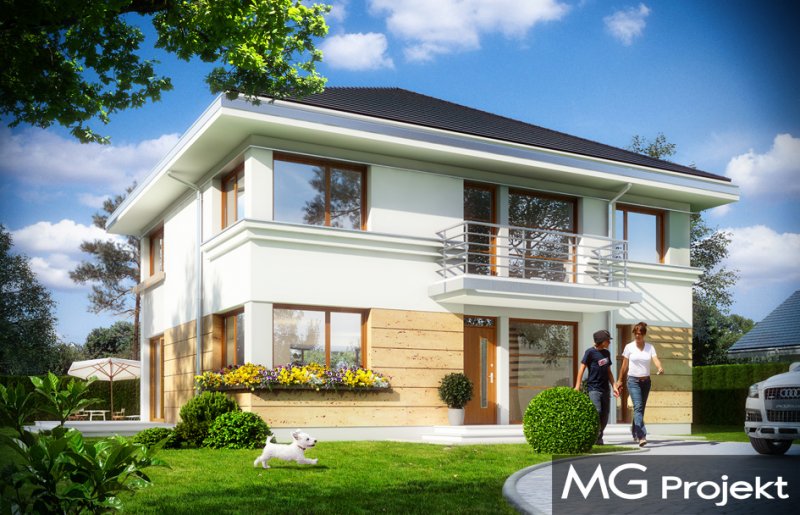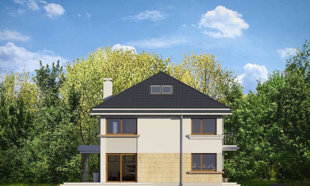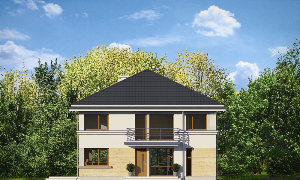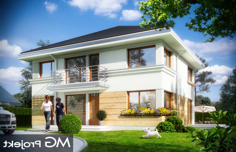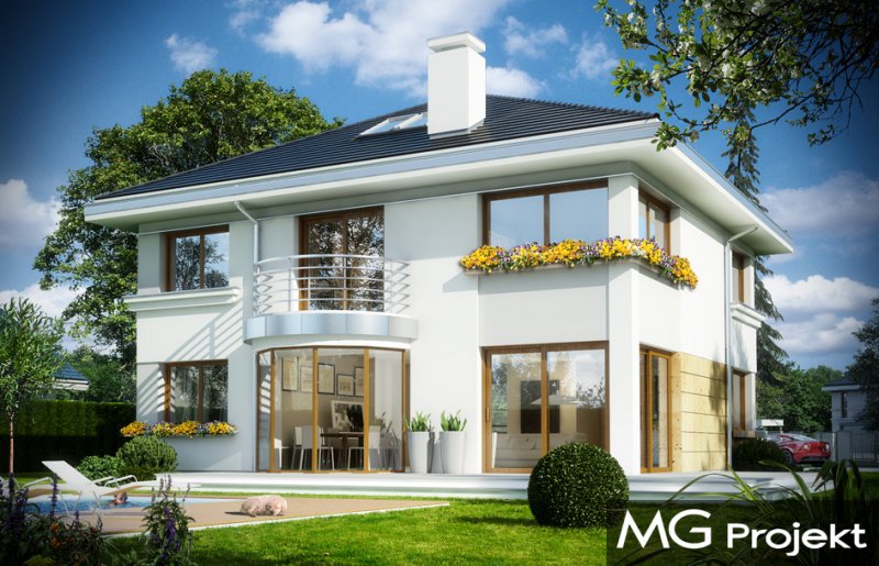 Szafir to piętrowy dom jednorodzinny, przeznaczony dla 4-6cioosobowej rodziny, o nowoczesnej architekturze i oryginalnych rozwiązaniach. Podstawową zaletą projektu jest jego prosta konstrukcja. Całość zbudowanego na planie prostokąta wnętrza ma tylko dwa słupy konstrukcyjne wewnątrz, dzięki czemu można dowolnie kształtować wnętrze – zarówno na parterze, jak i na piętrze. Dzięki monolitycznemu stropowi nad parterem, można zmieniać ustawienia ścianek działowych, zmniejszać lub zwiększać pokoje, tworzyć dodatkowe łazienki lub garderoby – wedle indywidualnych potrzeb Inwestora. W projekcie podstawowym zaproponowaliśmy następujący układ wnętrz : na parterze jednoprzestrzenna część dzienna, z holem, reprezentacyjnymi schodami, otwartą kuchnią z wyspą, salonem z kominkiem i ścianą TV, oraz jadalnią w pięknym łukowym wykuszu, dzięki któremu domownicy poczują się, jakby jedli posiłki w ogrodzie. Na parterze zaprojektowano dodatkowy pokój, pomieszczenie gospodarcze i łazienkę z sauną. Na piętrze mamy cztery sypialnie z dużymi szafami wbudowanymi, oraz piękną łazienkę. Wnętrze można oczywiście podzielić w inny sposób, pozostawiając tylko słupy konstrukcyjne i klatkę schodową. Dom jest energooszczędny – bardzo dobrze ocieplony, z wentylacją mechaniczną i z kotłem gazowym ( lub pompą ciepła na życzenie klienta ). Prosta konstrukcja ułatwi budowę, natomiast zwarta bryła i dobre izolacje pozwolą utrzymać koszty ogrzewania na niskim poziomie. Zapraszamy!