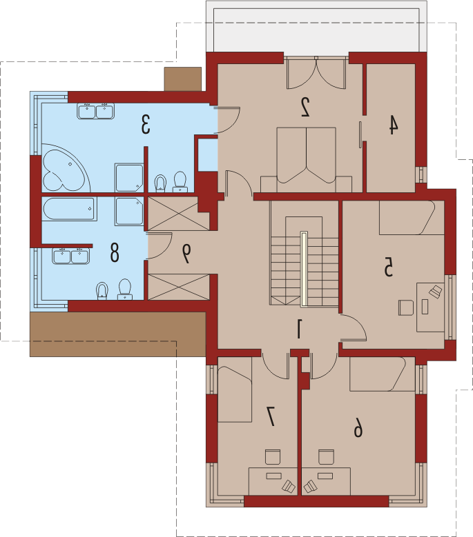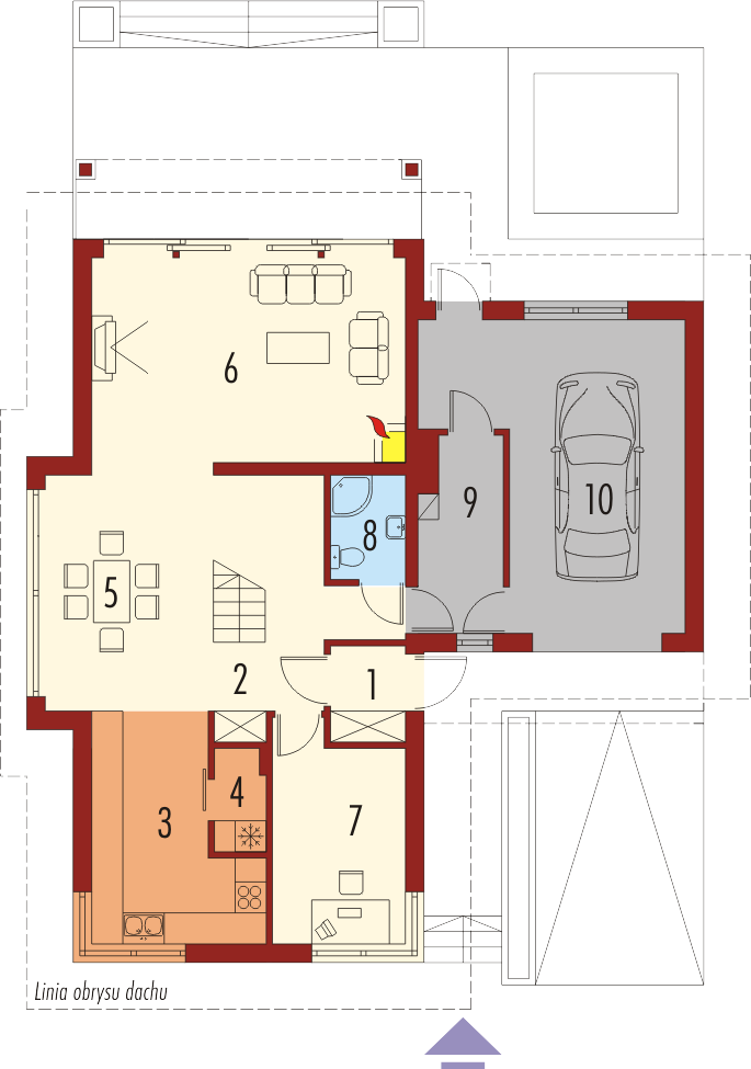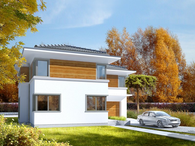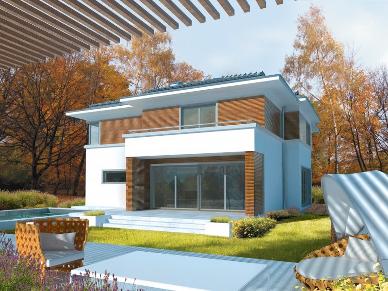 Prosta bryła „Toma G1” urzeka swoją nowoczesną estetyką. Ciekawa elewacja tworzy harmonijną, imponującą całość. Ogromną zaletą „Toma” jest duża ilość przeszkleń, które rozświetlają przestronne wnętrza i kreują jasną, czarującą atmosferę. Wygodnie rozplanowany układ pomieszczeń domu „Tom G1” spełni oczekiwania nawet najbardziej wymagających inwestorów. Parter to komfortowa strefa dzienna, w skład której wchodzi kuchnia ze spiżarnią, pokój dzienny z jadalnią, gabinet oraz łazienka. Pomieszczenie gospodarcze dostępne z ogrodu z pewnością pomieści sprzęt ogrodniczy. Piętro to strefa nocna, którą tworzy okazała sypialnia z garderobą, połączona z pięknym salonem kąpielowym, trzy wygodne pokoje, garderoba oraz duża łazienka „Tom G1” to doskonała propozycja dla wszystkich miłośników stylowych rozwiązań i efektownych przestrzeni.