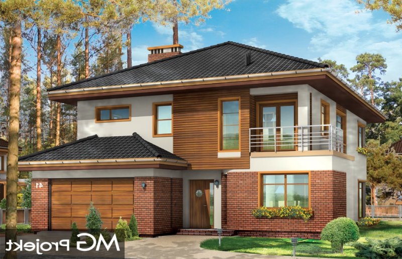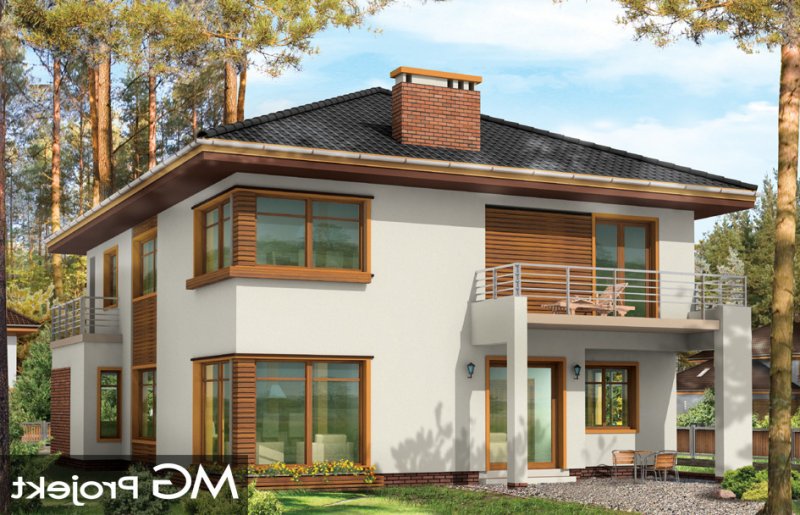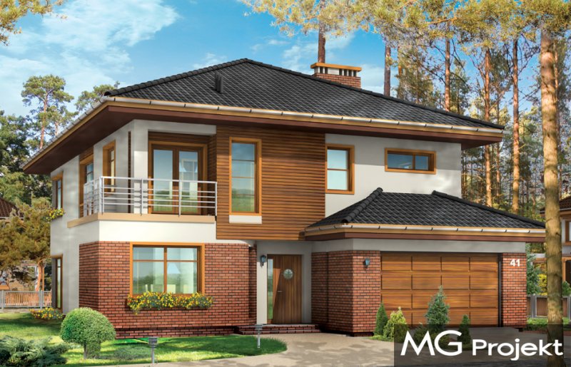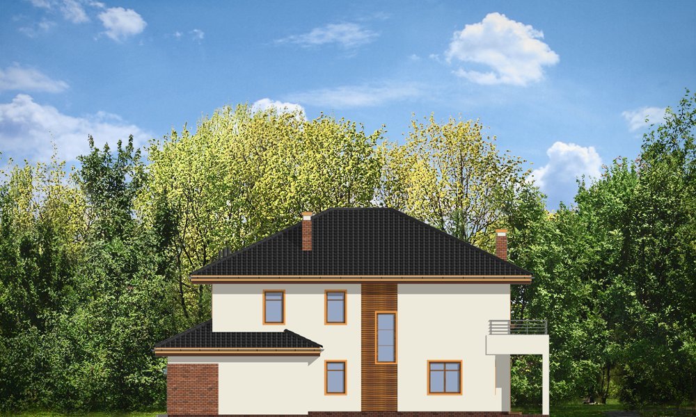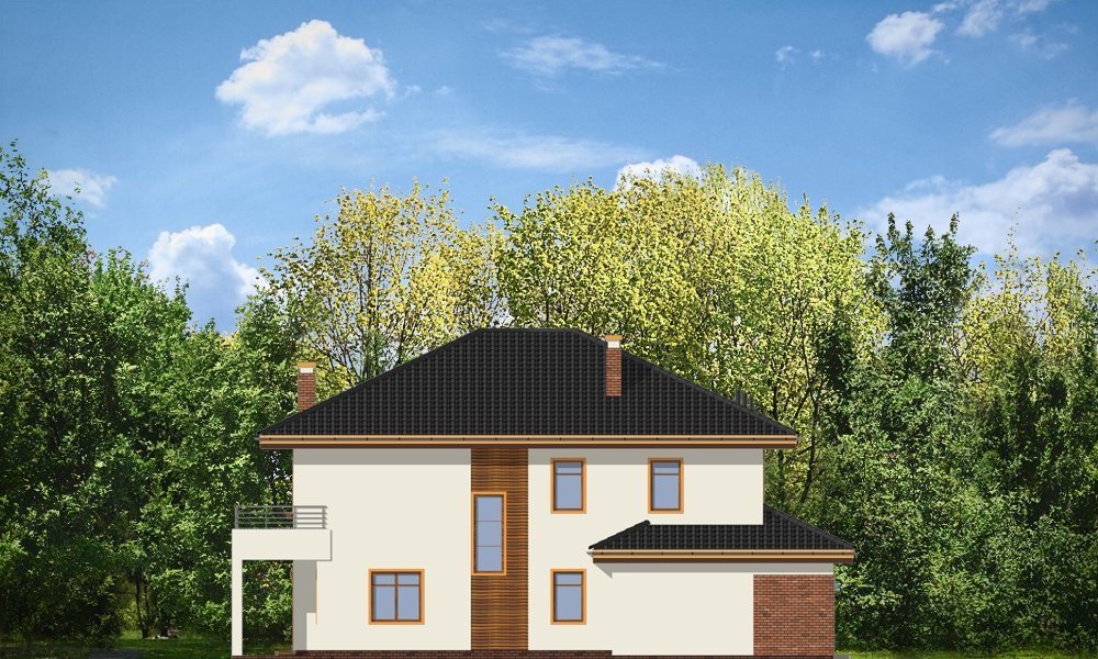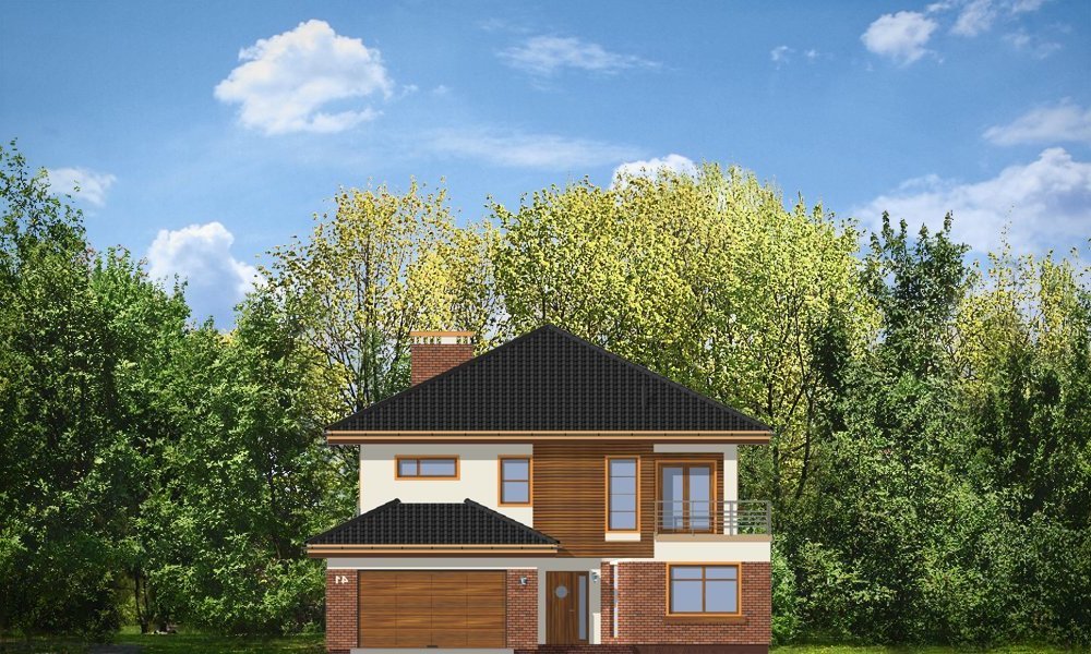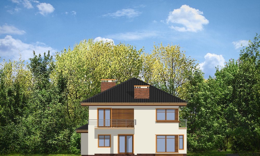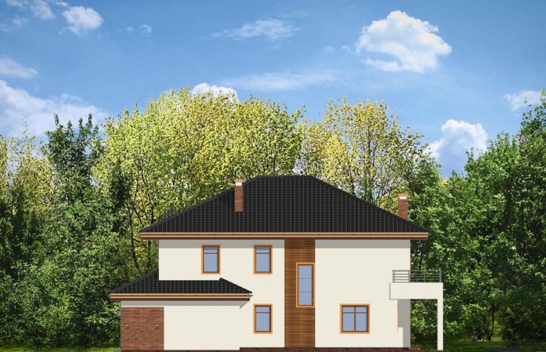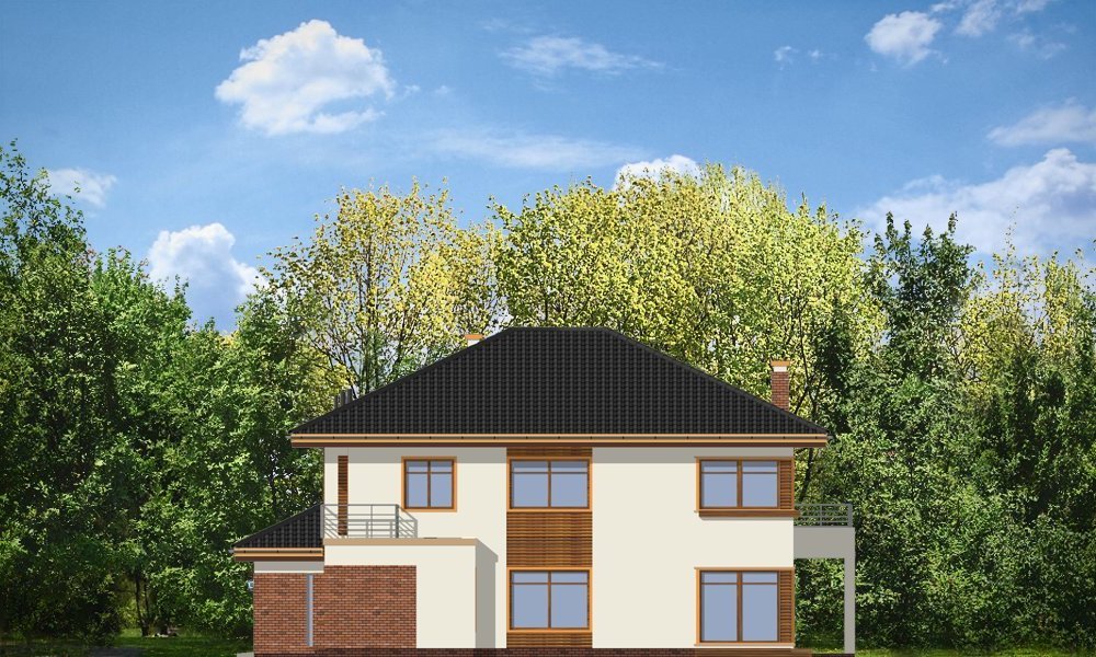 Topaz 2 to piętrowy, reprezentacyjny budynek jednorodzinny, o nowoczesnej acz nie przesadzonej architekturze. Zaprojektowano go z myślą o rodzinie 4-6 osobowej. Projekt występuje w dwóch wersjach wariantowych, ze zróżnicowaną częścią frontową. Bryła budynku jest urozmaicona kilkoma użytymi materiałami, wykuszami i daszkami. Wejście do domu zostało zaakcentowane podcieniem z łukową boczną ścianą z klinkieru. Wnętrze jest uniwersalnym wygodnym mieszkaniem dla średniej wielkości rodziny. Składa się z czterech sypialni na piętrze, z których każda ma swoją garderobę. Sypialnia rodziców ma dodatkową łazienkę. Na parterze do dyspozycji mamy salon połączony z jadalnią i holem, kuchnię i dodatkowy pokój - gabinet. W domu przewidziano również garaże i przestrzeń gospodarczą. Część ogrodowa budynku to duże przeszklenia - otwarcia z salonu na otaczającą dom działkę. Pracownia posiadatakże wersję w odbiciu lustrzanym.
