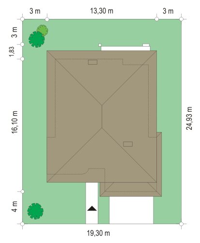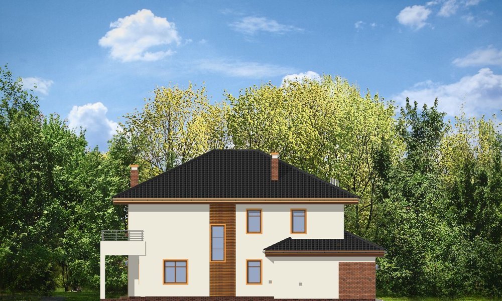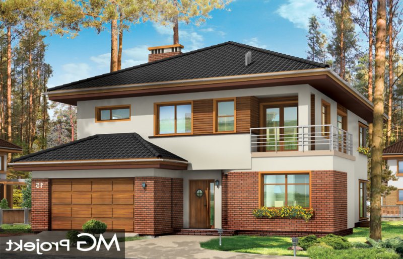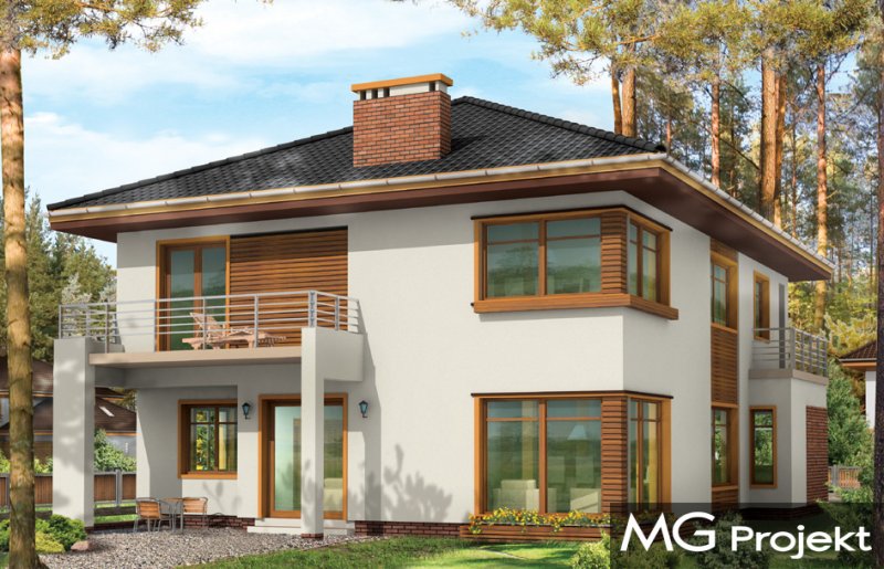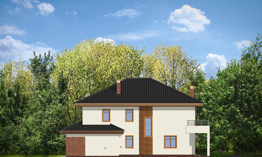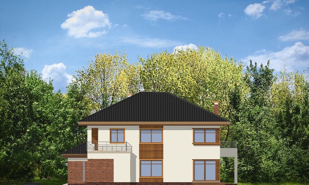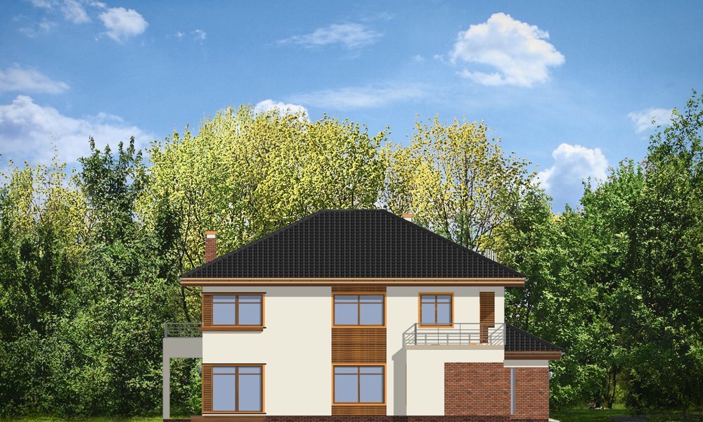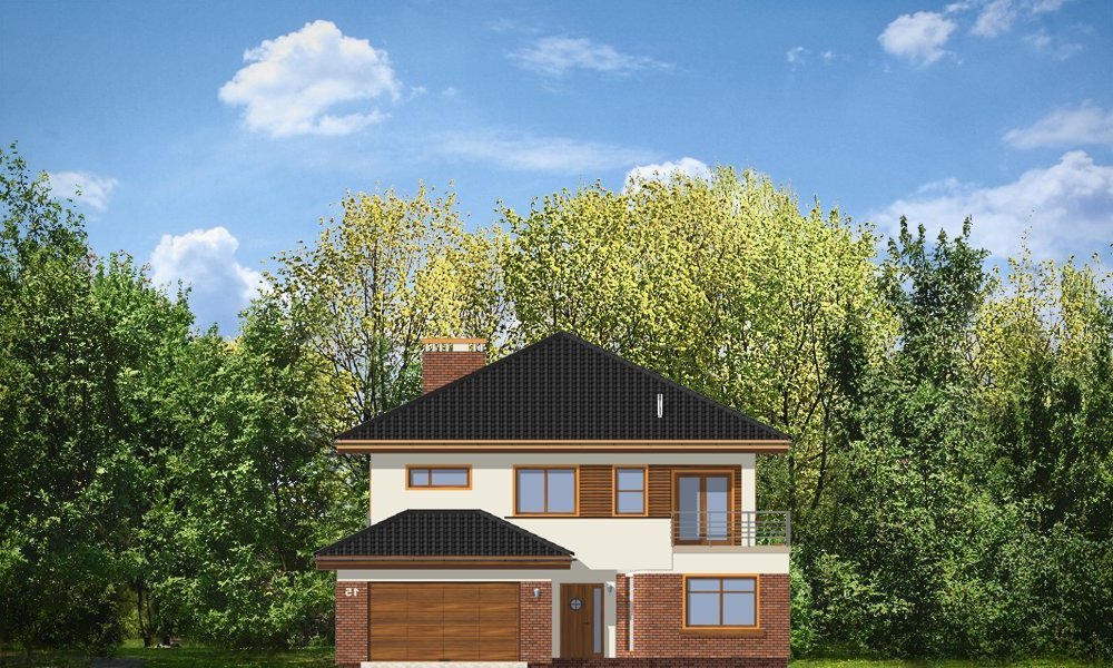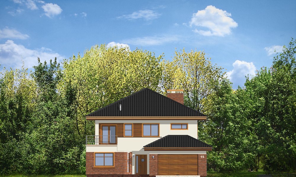 Topaz to elegancki, piętrowy dom jednorodzinny. Budynek o nowoczesnej acz nie przesadzonej architekturze. Projekt występuje w dwóch wersjach wariantowych, ze zróżnicowaną częścią frontową. Bryła budynku jest urozmaicona kilkoma użytymi materiałami, wykuszami i daszkami. Wejście do mieszkania zostało zaakcentowane podcieniem z łukową boczną ścianą z klinkieru. Wnętrze jest uniwersalnym, wygodnym mieszkaniem dla rodziny 4-6 osobowej. Składa się z czterech sypialni na piętrze, z których każda ma swoją garderobę. W sypialni rodziców zaprojektowano dodatkową łazienkę. Na parterze do dyspozycji mamy salon połączony z jadalnią i holem, kuchnię i dodatkowy pokój - gabinet. W domu przewidziano również garaże i przestrzeń gospodarczą. Część ogrodowa domku to duże przeszklenia - otwarcia z salonu na otaczającą dom działkę. Pracownia dysponuje też projektem w odbiciu lustrzanym.