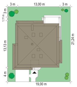 - Min. wymiary działki 19.00x19.00 m