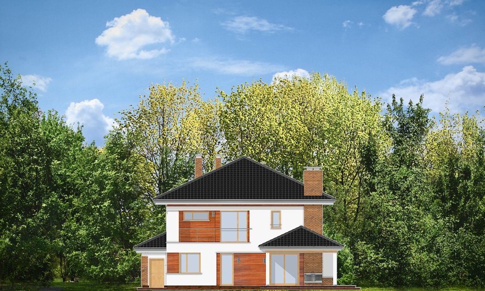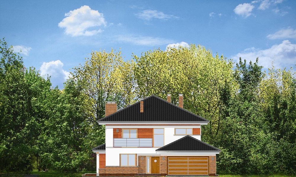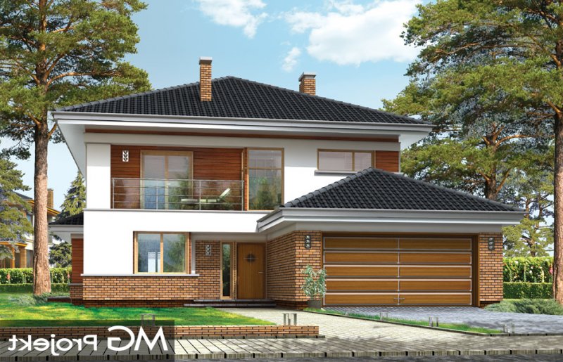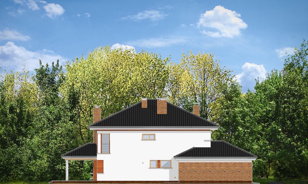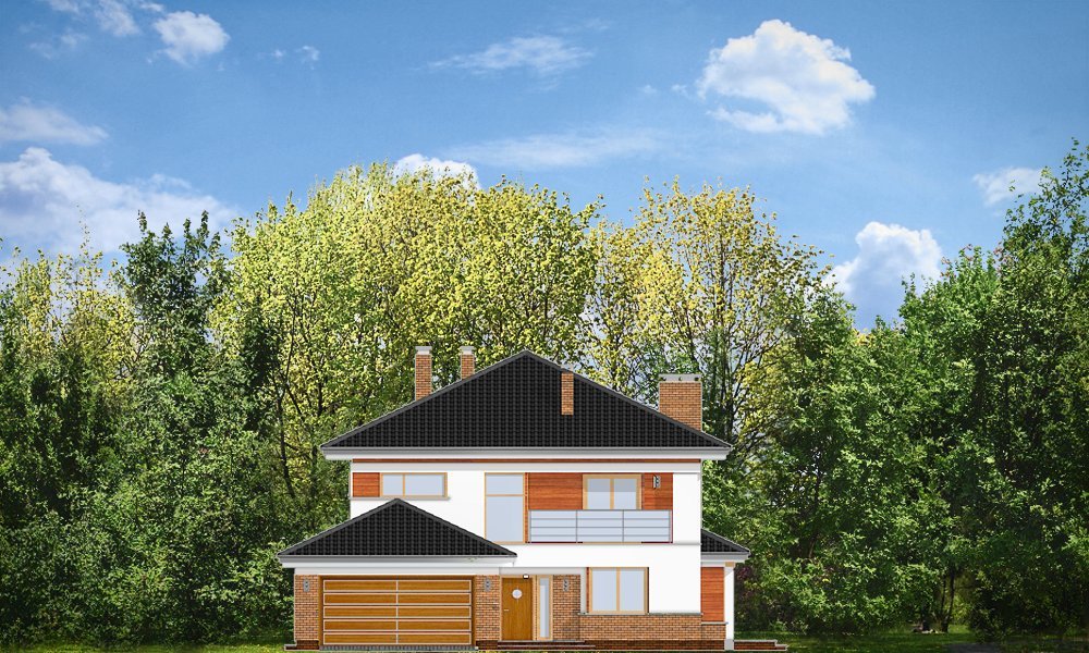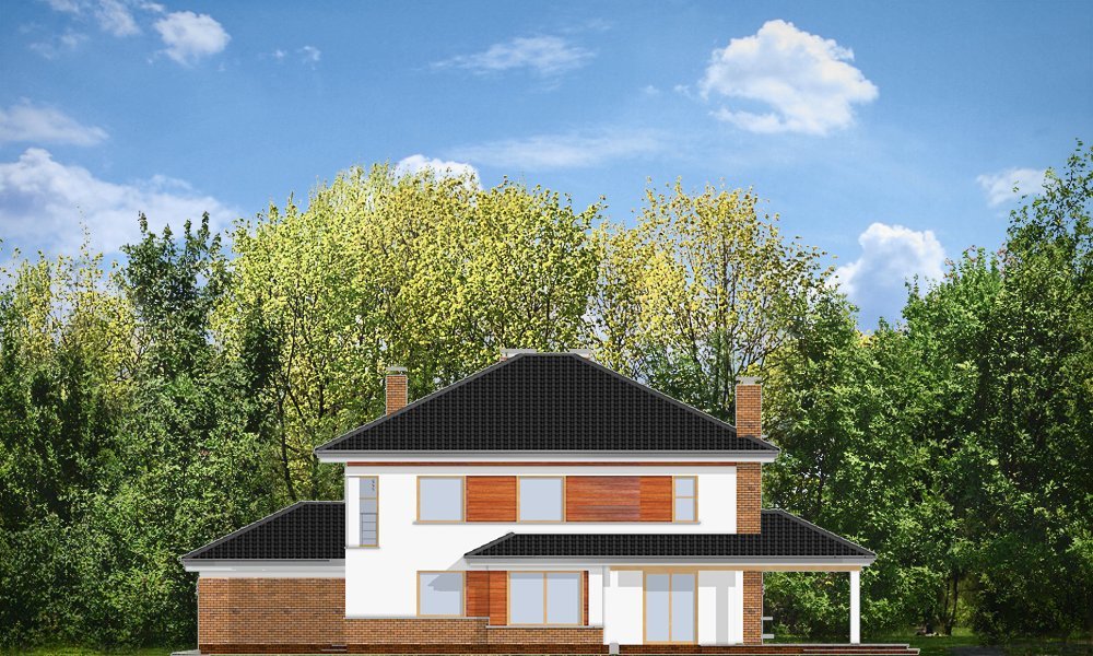 Willa na Borowej to piętrowy dom jednorodzinny dla rodziny cztero-sześcioosobowej, przykryty czterospadowym dachem. Dom jest podmiejską willą o nowoczesnej ale spokojnej architekturze. Zwarta bryła budynku z dobudowanym garażem i dużym zadaszonym podcieniem z tyłu domu, została ciekawie ozdobiona klinkierowymi i drewnianymi okładzinami elewacji, oraz loggiami i podcieniem wejściowym. Masywny ozdobny komin kominka wewnętrznego i zewnętrznego, czy narożne okna - to dodatkowe ozdoby bryły. Wszystkie elementy tworzą spójną, spokojną kompozycyjnie całość. Na parterze zaprojektowano duży salon z jadalnią i holem, z częściowo otwartą kuchnią, oraz dodatkowy pokój - gabinet lub sypialnię gościnną. Na piętrze umieszczono sypialnie, z odrębnym apartamentem rodziców, z własną łazienką, garderobą i balkonem z widokiem na ogród. Na parterze przez szerokie przeszklenia z salonu zaplanowano wyjście do dużego podcienia i na taras ogrodowy. Pracownia posiada wersję odbicia lustrzanego projektu.