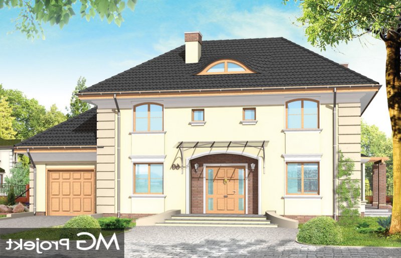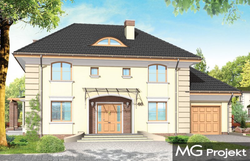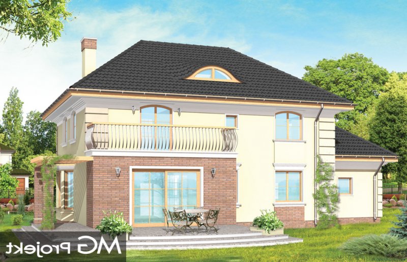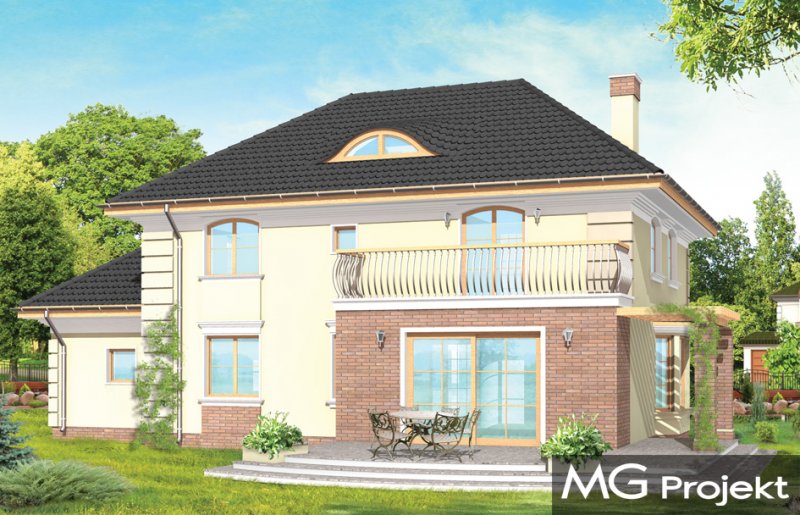 Willowy to piętrowy domek jednorodzinny, nawiązujący swoim wyglądem do śródziemnomorskich willi, doskonale wpasowujący się w podmiejską zabudowę jednorodzinną. Dom dzięki dwu pełnym kondygnacjom zajmuje na działce niewielką powierzchnię. Ponadto pokoje na poddaszu nie mają „skosów” - tak częstych w domach z wielospadowymi dachami. Obszerny strych nad pierwszym piętrem daje dodatkową, zapasową przestrzeń, podobnie jak strych nad garażem. Domek pomieści dużą - nawet 6-7osobową rodzinę. Na parterze zaprojektowano duży salon z aneksem jadalnym, otwarty przestrzennie na holl i eleganckie schody. Na parterze zmieszczono również dodatkowy pokój i zaplecze gospodarcze. Na piętrze mieszczą się cztery sypialnie i dwie łazienki - jedna z połówek piętra może być apartamentem rodziców, z odrębną łazienką i własnym wejściem. Pracownia posiada wersję odbicia lustrzanego projektu.