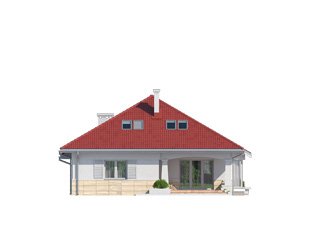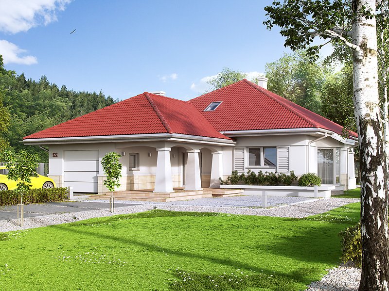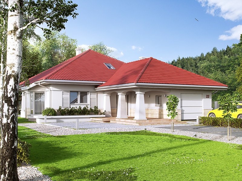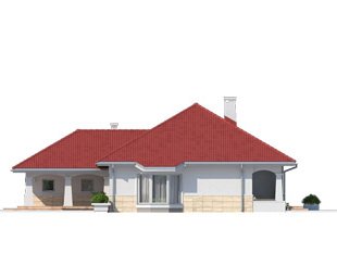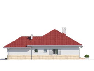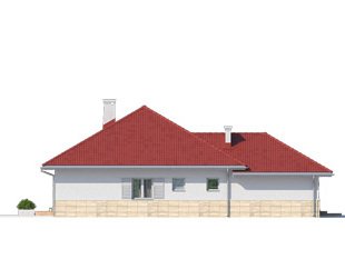 Jednorodzinny budynek mieszkalny, parterowy, niepodpiwniczony, z możliwością adaptacji poddasza na funkcje mieszkalne. Program użytkowy budynku zapewnia komfort mieszkania 3-osobowej rodzinie. Pomieszczenia jakie zaprojektowano w budynku, to: w części dziennej - salon, kuchnia połączona z jadalnia, spiżarnia; w części intymnej - dwie sypialnie, w tym jedna z garderobą i łazienka; w części gospodarczej - kotłownia i garaż.