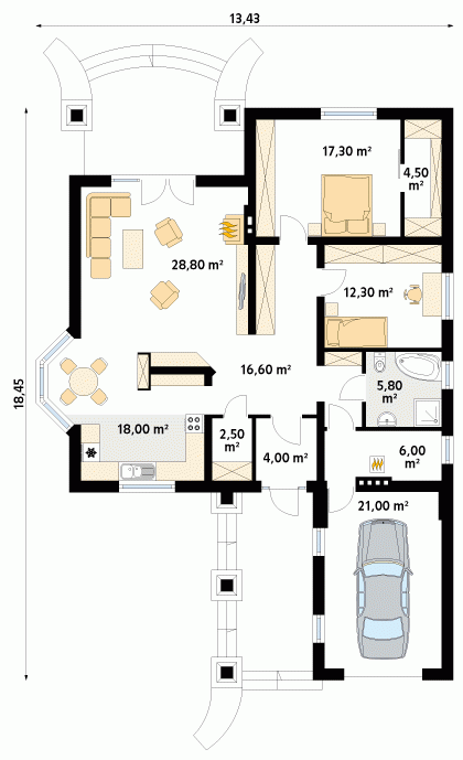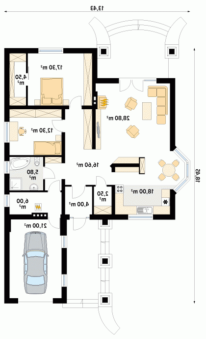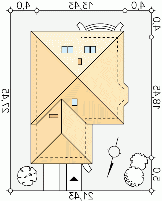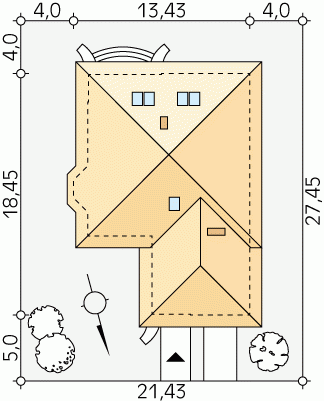 - Min. wymiary działki 21.43x27.45 m