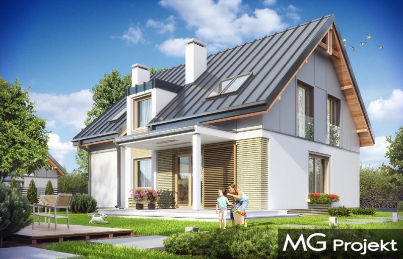 Albatros to prosty w budowie, niedrogi domek z poddaszem użytkowym dla 4-5cioosobowej rodziny. Bryła budynku została zaprojektowana na planie prostokąta. Poddasze wieńczy symetryczny dwuspadowy dach. Projekt podporządkowano połączeniu ekonomicznych i funkcjonalnych rozwiązań, z nowoczesną i ciekawą estetyką budynku. Albatros jest klasycznym domem z poddaszem i dwuspadowym dachem, który bez problemu wybuduje każdy wykonawca, a zarazem ma w sobie „coś”: ciekawie dobrane materiały, dobre proporcje brył, właściwą wielkość okien, no i przede wszystkim – funkcjonalne, rozsądnie zaplanowane wnętrze. Parter domu, to przestrzeń dzienna, z wygodnym salonem, centralnym holem z ozdobnymi schodami, częściowo otwartą na salon kuchnią, oraz dodatkowy pokój - gabinet lub sypialnia gościnna i część gospodarcza, czyli garaż i kotłownia. Na poddaszu, dzięki wysokim ściankom kolankowym, mieszczą się trzy przestronne sypialnie, w tym sypialnia rodziców z osobną łazienka i garderobą. Dodatkowo przewidziano tu też miejsce na pralnię – ewentualnie schowek. Albatros mimo niewielkiej powierzchni to przestronny i wygodny budynek, który zapewni komfortowe warunki do życia nawet licznej rodzinie. Energooszczędne rozwiązania – dobre docieplenia, zwarta bryła budynku - pozwolą ograniczyć koszty przyszłej eksploatacji, a prostota konstrukcji domu zapewni mniej stresów podczas budowy. Pracownia posiada wersję odbicia lustrzanego projektu.