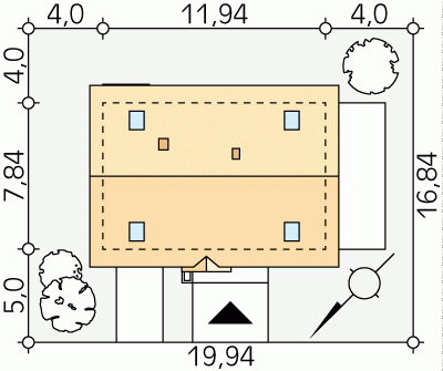Ściany: 2-warstwowe - beton komórkowy SOLBET 24 cm + styropian Termo Organika, Stropy: żelbetowe, wylewane, Dach: dachówka ceramiczna, kąt nachylenia 45°