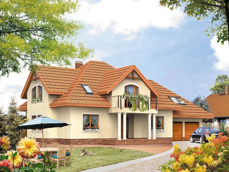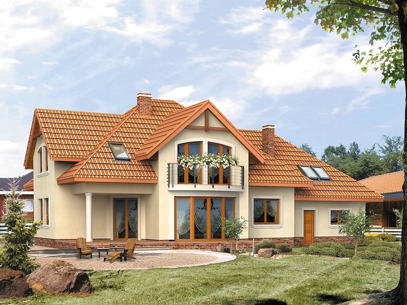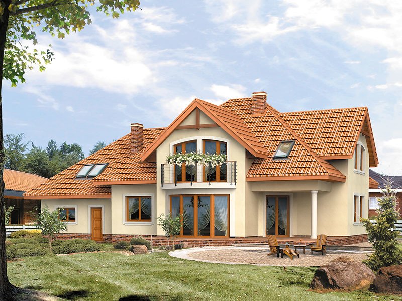 Ściany: 2-warstwowe - YTONG 24 cm + styropian, Stropy: gęstożebrowe, Dach: dachówka ceramiczna, kąt nachylenia 40°