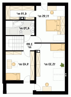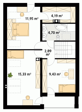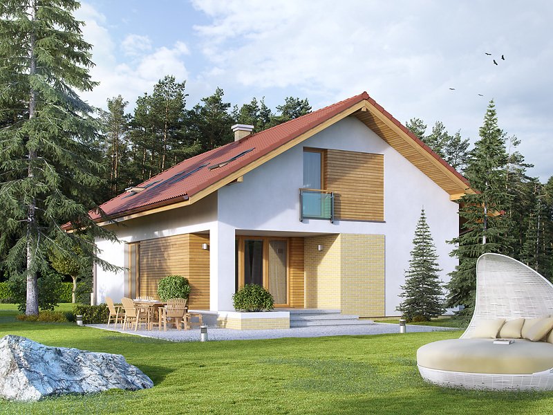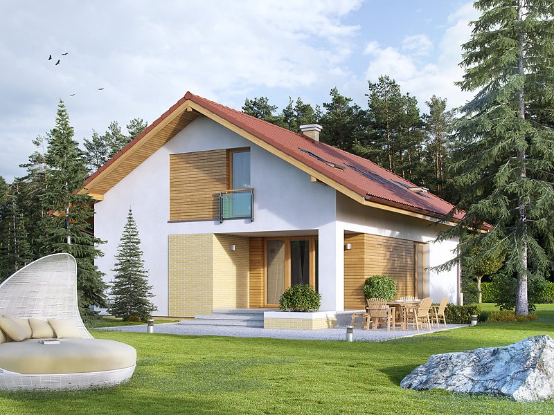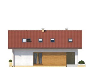 Jednorodzinny dom parterowy z użytkowym poddaszem. Bogaty układ funkcjonalny w nim zaprojektowany, został przystosowany dla potrzeb 4-osobowej rodziny. Na parterze w części dziennej przewidziano: salon z jadalnią, kuchnię ze spiżarnią oraz gabinet, w części gospodarczej kotłownię i łazienkę. Na poddaszu w części nocnej zaprojektowano 3 sypialnie, łazienkę oraz garderobę. W tym projekcie, prosta, klasyczna bryła idealnie współgra z nowoczesnymi elewacjami.