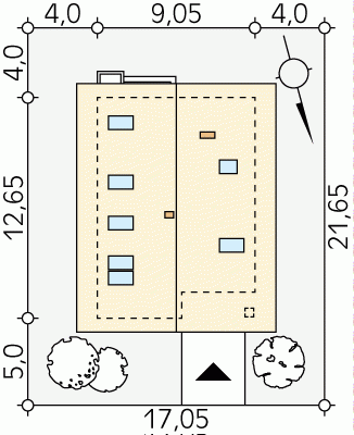 - Min. wymiary działki 17.05x21.65 m