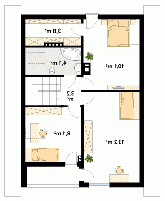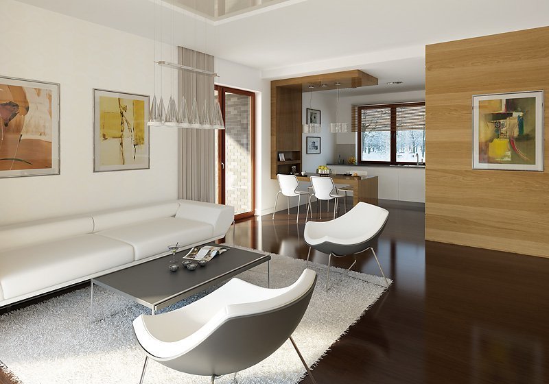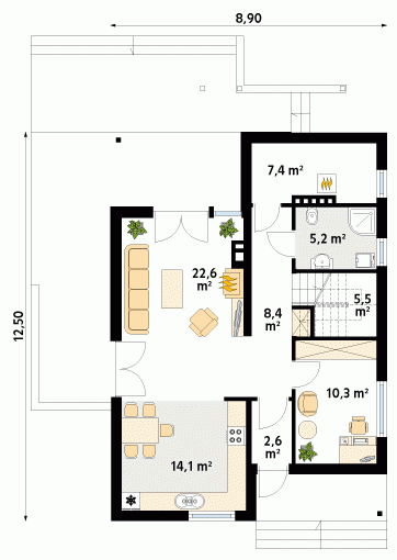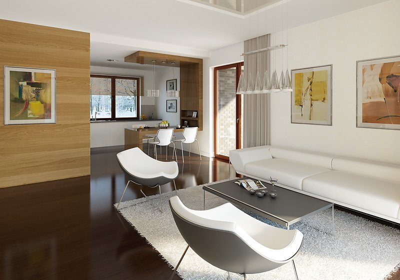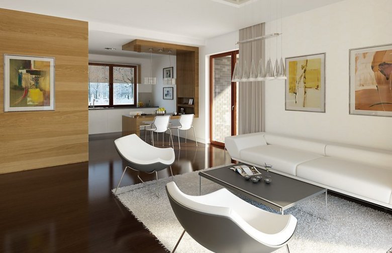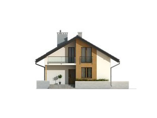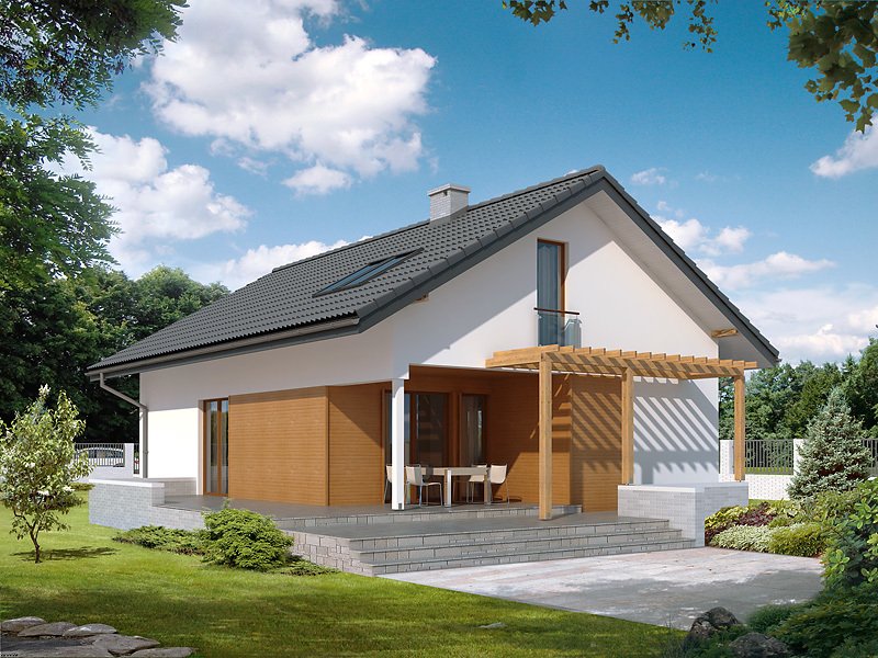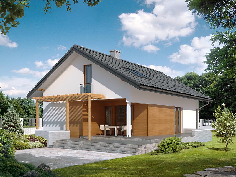 Prosty dom o klasycznej bryle i o nowoczesnych elewacjach. Zawiera w sobie pełny program funkcjonalny dla 4 – 5-osobowej rodziny. Na parterze zaprojektowano dodatkowy pokój. Atutem projektu jest duży zadaszony taras.