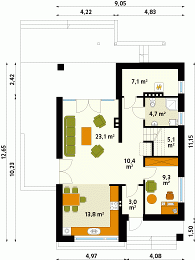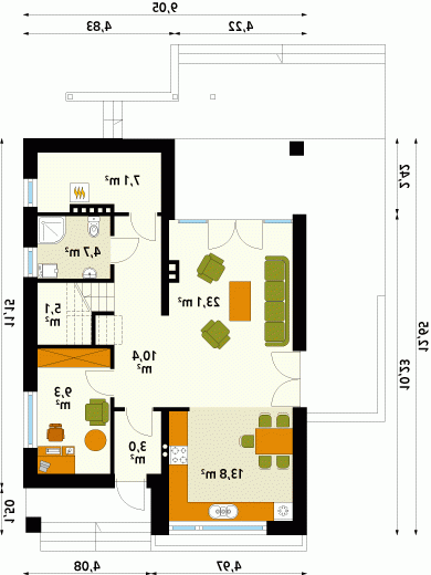 - Wysokość budynku 7.10 m