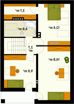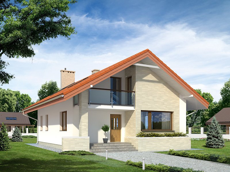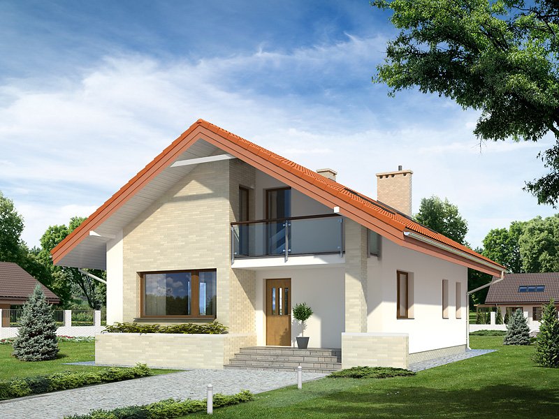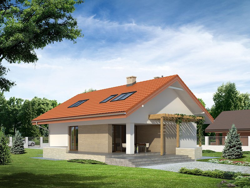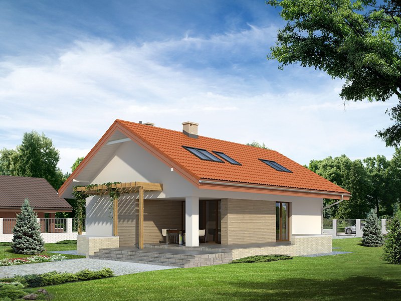 Niewielki, jednorodzinny dom parterowy z użytkowym poddaszem. Bogaty układ funkcjonalny przystosowany dla 4-osobowej rodziny. Na parterze w części dziennej przewidziano: salon, kuchnię z jadalnią oraz gabinet, w części gospodarczej – kotłownię i łazienkę. Na poddaszu – w części nocnej – 3 sypialnie, łazienkę oraz garderobę. Prosta, klasyczna bryła połączona z nowoczesnymi elewacjami. Dom zaprojektowany w technologii Multi-Comfort z zastosowaniem produktów marki Saint-Gobain łączy unikalne właściwości produktów z rozsądną ceną. Standard Multi-Comfort oznacza szereg korzyści, takich jak: niskie koszty ogrzewania, komfort termiczny, akustyczny, dobra jakość powierza, bezpieczeństwo przeciwpożarowe (klasa A1). Wszystko to jest możliwe za sprawą zastosowanych w projekcie sprawdzonych materiałów znanych i cenionych marek: Isover, Weber, Rigips, Glassolutions. Produkty Grupy Saint-Gobain są wytwarzane z naturalnych materiałów i posiadają deklaracje środowiskowe. W procesie eksploatacji budynki zaprojektowane w technologii Multi-Comfort posiadają niewielkie zapotrzebowanie na energię pierwotną. Więcej informacji o domach w standardzie Multi-Comfort: www.multi-comfort.pl