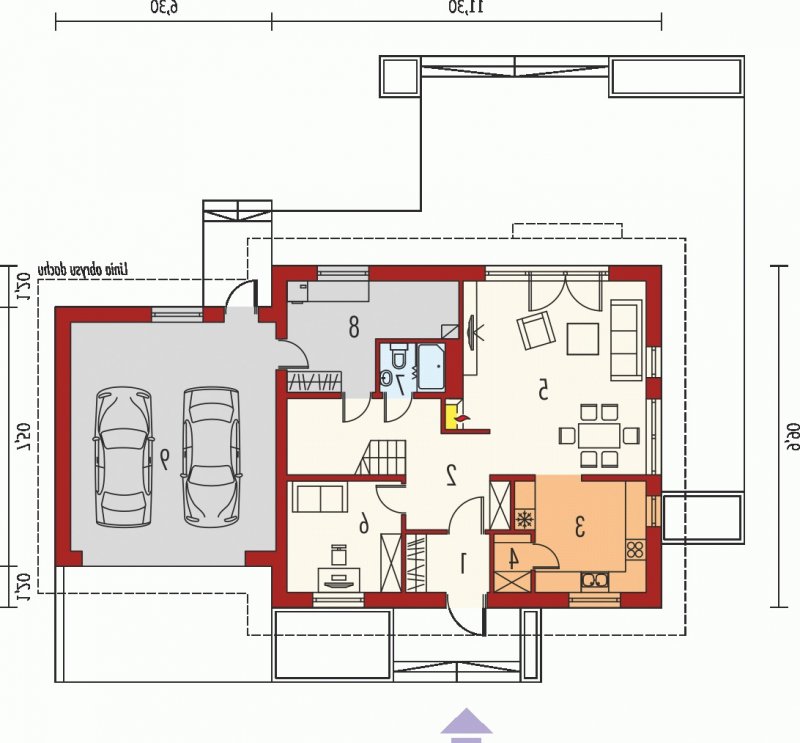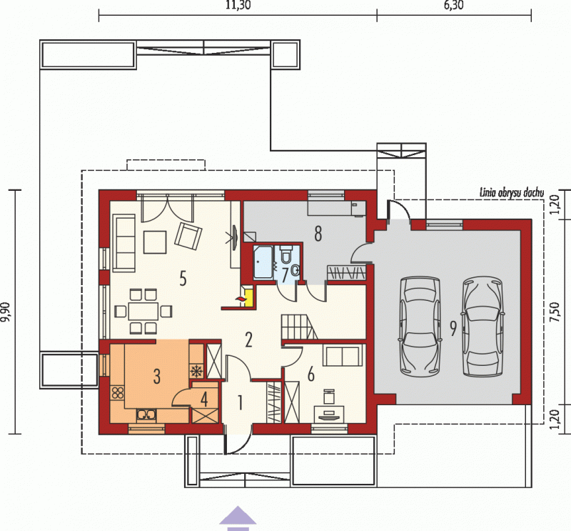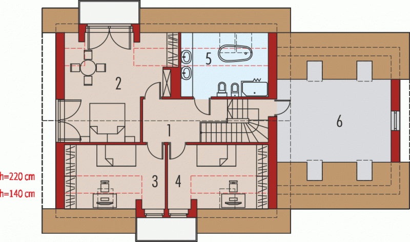 Dach: konstrukcja drewniana, ocieplenie wełna mineralna 30 cm, dachówka płaska lub inna o podobnych parametrach