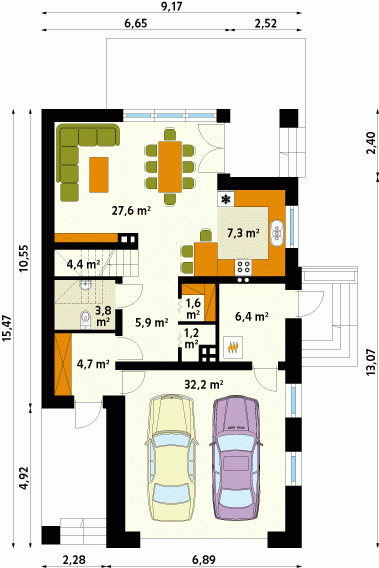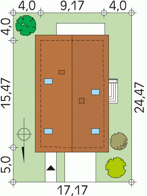 - Min. wymiary działki 17.17x24.47 m