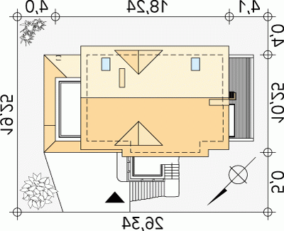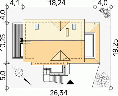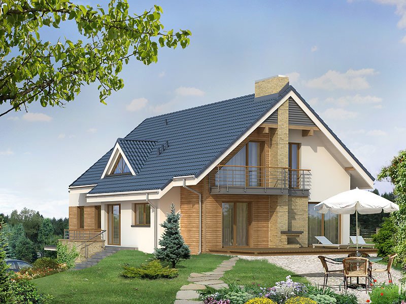 Ściany: 2-warstwowe - pustak ceramiczny + styropian, Stropy: żelbetowe, wylewane, Dach: dachówka, kąt nachylenia 40°