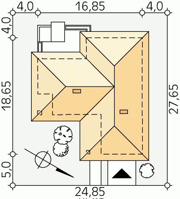 Ściany: 2-warstwowe - pustak ceramiczny + styropian Termo Organika, Stropy: żelbetowe, wylewane, Dach: dachówka, kąt nachylenia 25°