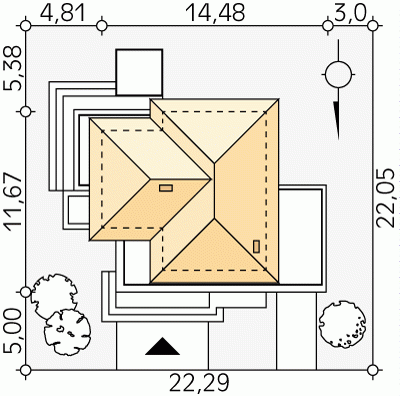 - Min. wymiary działki 22.29x20.05 m