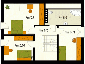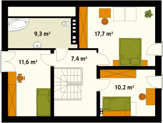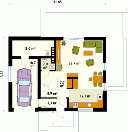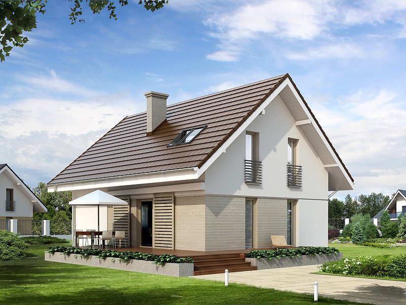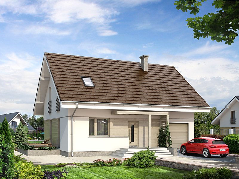 Optymalny dom dla 4-osobowej rodziny. Prosta klasyczna bryła współgra tu z nowoczesnymi elewacjami. Wyraźny podział na część: dzienną, nocną i gospodarczą. Dom zaprojektowany w technologii Multi-Comfort z zastosowaniem produktów marki Saint-Gobain łączy unikalne właściwości produktów z rozsądną ceną. Standard Multi-Comfort oznacza szereg korzyści, takich jak: niskie koszty ogrzewania, komfort termiczny, akustyczny, dobra jakość powierza, bezpieczeństwo przeciwpożarowe (klasa A1). Wszystko to jest możliwe za sprawą zastosowanych w projekcie sprawdzonych materiałów znanych i cenionych marek: Isover, Weber, Rigips, Glassolutions. Produkty Grupy Saint-Gobain są wytwarzane z naturalnych materiałów i posiadają deklaracje środowiskowe. W procesie eksploatacji budynki zaprojektowane w technologii Multi-Comfort posiadają niewielkie zapotrzebowanie na energię pierwotną. Więcej informacji o domach w standardzie Multi-Comfort: www.multi-comfort.pl