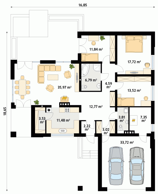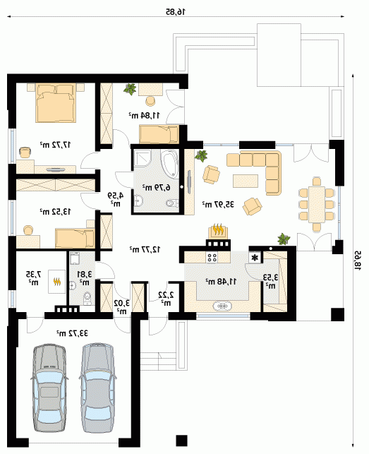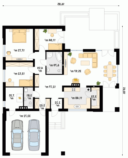 Jednorodzinny budynek mieszkalny, parterowy, z optymalnym programem dla 4-osobowej rodziny. W budynku przewidziano wyraźny podział na część dzienną, nocną i gospodarczą. Część reprezentacyjną domu stanowi salon z jadalnią oraz kuchnia wzbogacona o spiżarnię. W części nocnej przewidziano trzy sypialnie oraz łazienkę. W części gospodarczej zaprojektowano dwustanowiskowy garaż oraz kotłownię na każdy rodzaj paliwa. Projekt Antracyt funkcjonalnie i stylistycznie nawiązuje do projektu Ambrozja (dach wielospadowy).