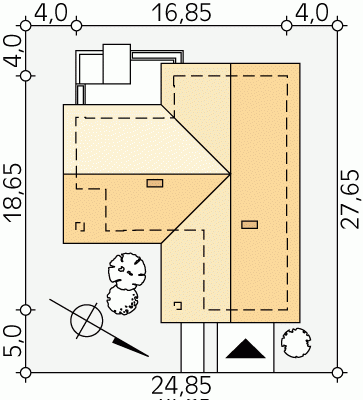 Ściany: 2-warstwowe - pustak ceramiczny + styropian, Stropy: żelbetowe, wylewane, Dach: dachówka, kąt nachylenia 25°