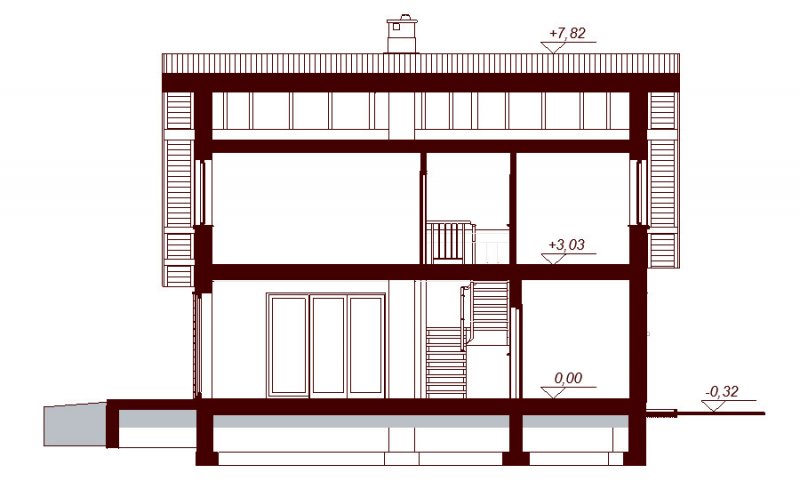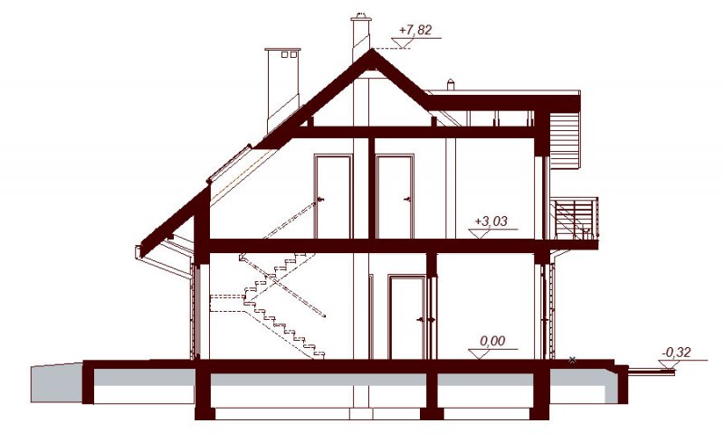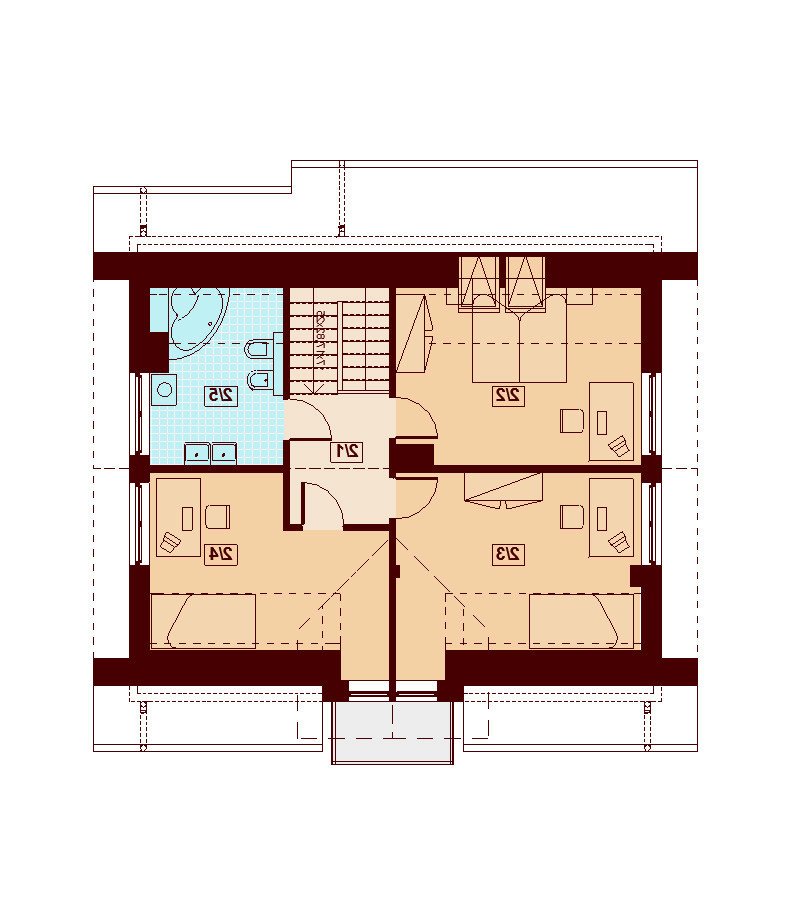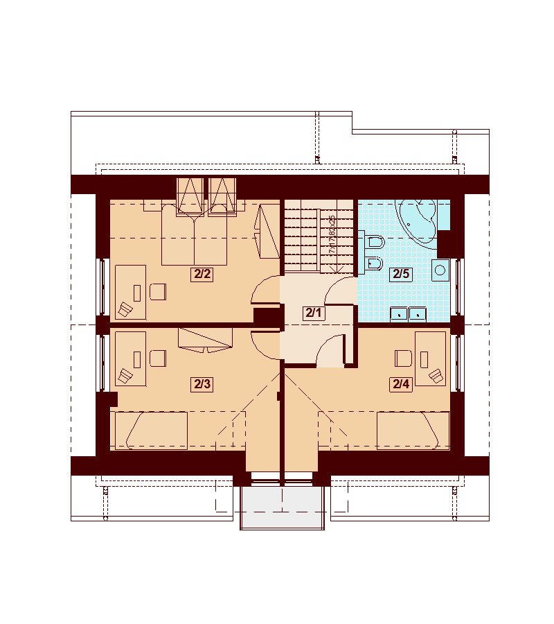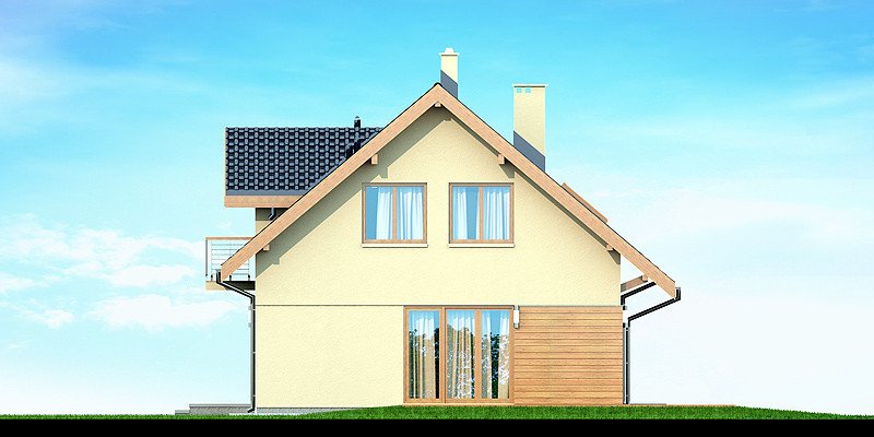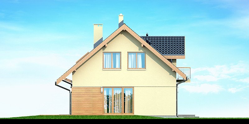 Na poddaszu zaprojektowano trzy pokoje oraz wygodną łazienkę. Architektura domu to połączenie tradycji z nowoczesnością oraz elegancji z dbałością o proporcje, estetykę i funkcjonalność. Dom zaprojektowano jako energooszczędny.
