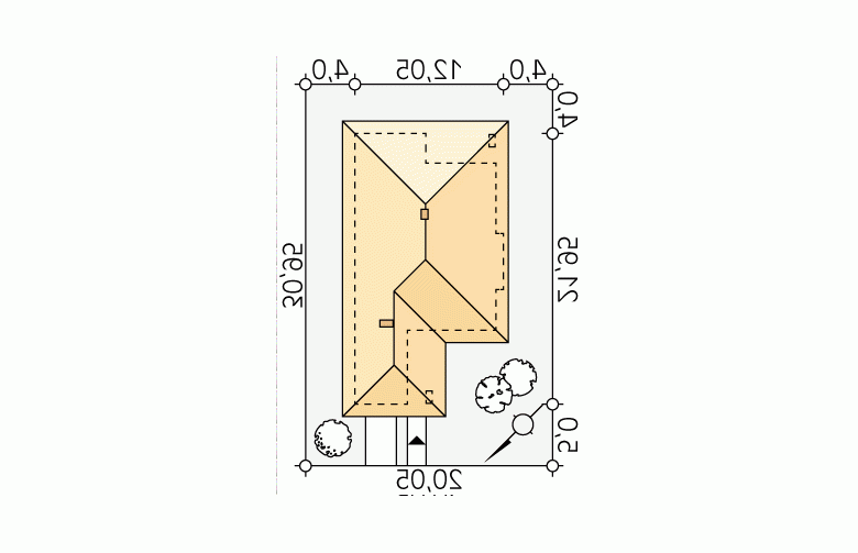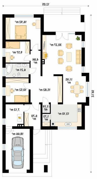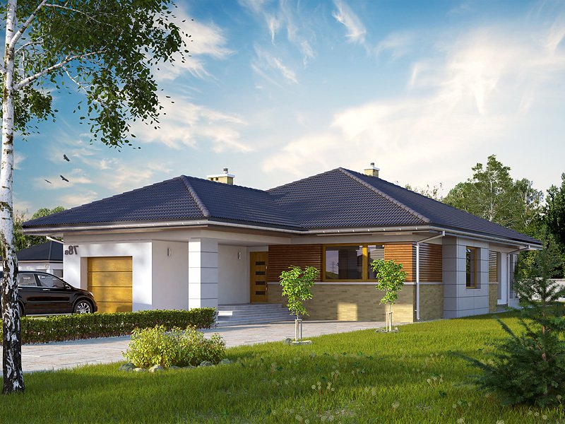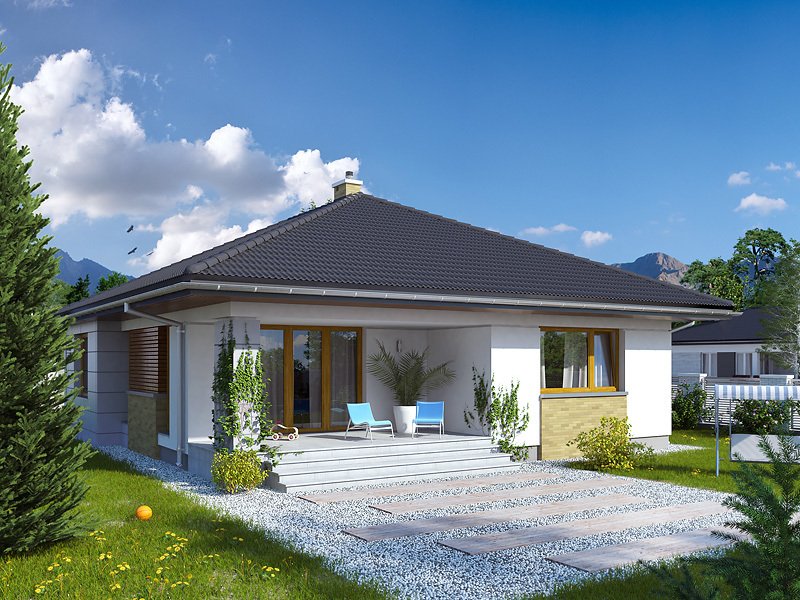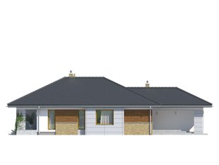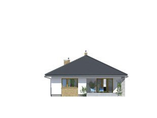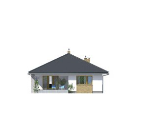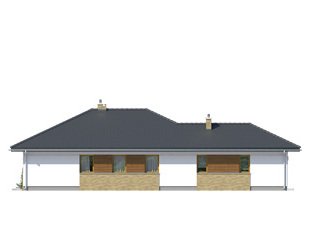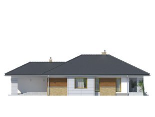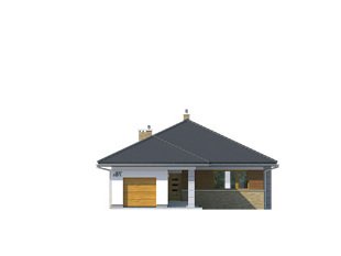 Przestronny dom jednorodzinny z dwoma łazienkami i trzema sypialniami w części nocnej oraz efektownym holem wejściowym, spiżarnią, dużą kuchnią, ciekawie zaakcentowaną jasną jadalnią, salonem, który otwiera sie na taras w części dziennej. Dodatkowym uzupełnieniem jest jednostanowiskowy garaż, spora kotłownia i wiatrołap połączony z wygodną szatnią. Bryłę wyróżnia podcieniowe wejście. Dom idealny na wąską działkę.