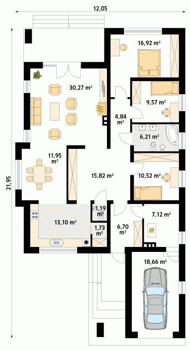 - Garaż 18.66 m²