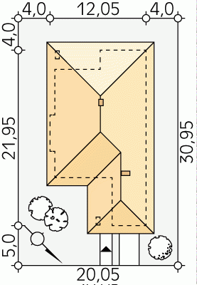 - Min. wymiary działki 20.05x30.95 m