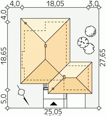 - Min. wymiary działki 25.05x27.65 m