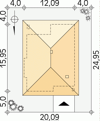 Ściany: 2-warstwowe - pustak ceramiczny + styropian, Stropy: żelbetowe, wylewane, Dach: dachówka, kąt nachylenia 25°