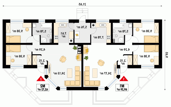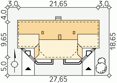 - Min. wymiary działki 27.65x18.65 m