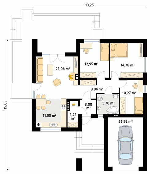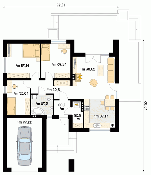 - Min. wymiary działki 21.25x24.05 m