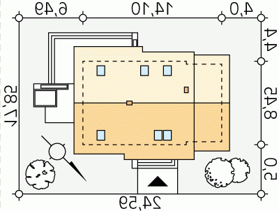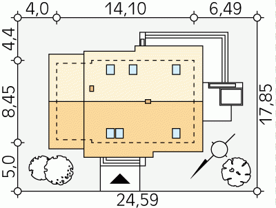 - Min. wymiary działki 24.59x17.85 m