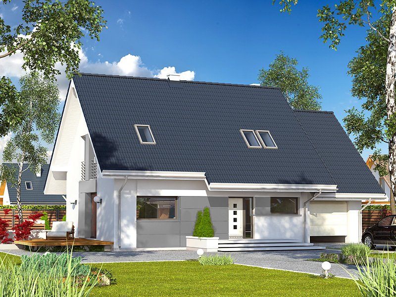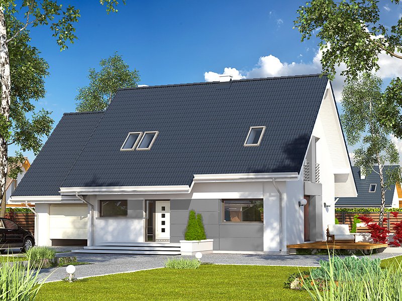Azuryt jest projektem energooszczędnym, skrojonym na miarę potrzeb 4-osobowej rodziny. Charakteryzuje się prostą bryłą przykrytą dwuspadowym dachem. Stanowi umiejętne połączeniem tradycyjnej bryły z nowoczesną stylistyką. Do budynku przylega jednostanowiskowy garaż ze sporą kotłownią, posiadającą wejście od strony elewacji ogrodowej. Przestrzeń parteru wypełnia salon połączony z aneksem kuchennym - tworząc spójną całość. Dodatkowo na parterze znajduje się pokój/gabinet. Na poddaszu zaprojektowano trzy sypialnie oraz łazienkę. Projekt Azuryt posiada trzy wersje zagospodarowania przestrzeni nad garażem.