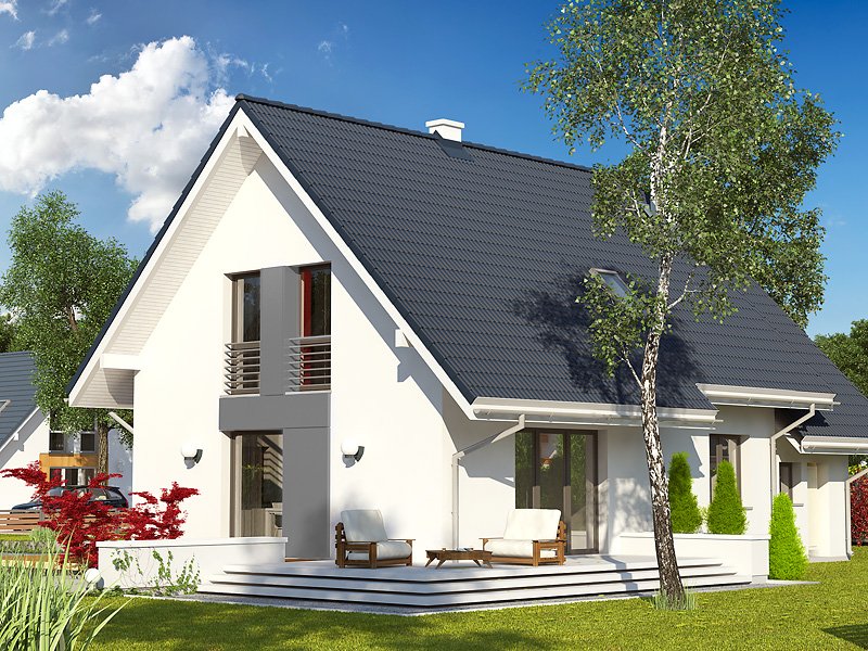 Ściany: 2-warstwowe - beton komórkowy SOLBET 24 cm + styropian Termo Organika, Stropy: płyta żelbetowa, Dach: dachówka ceramiczna, kąt nachylenia 45°