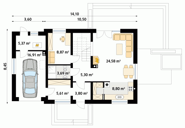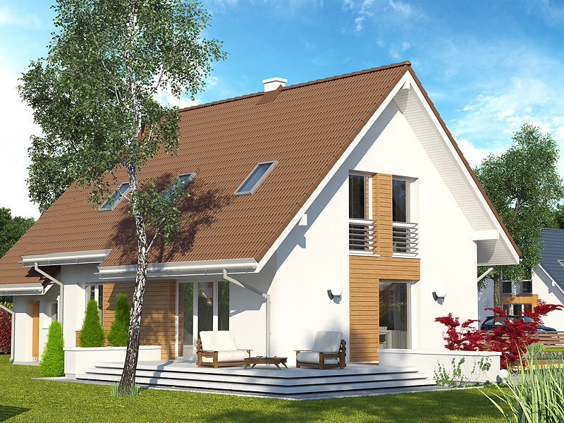 Ściany: 2-warstwowe - beton komórkowy SOLBET 24 cm + styropian, Stropy: żelbetowe, wylewane, Dach: dachówka, kąt nachylenia 45°
