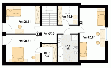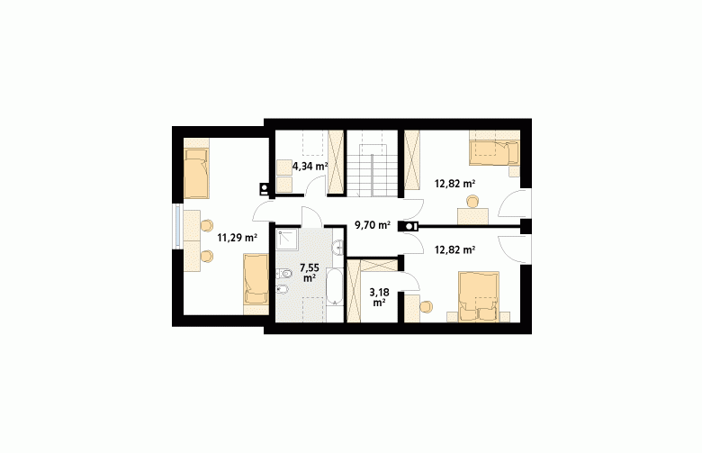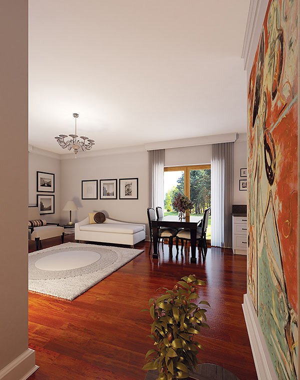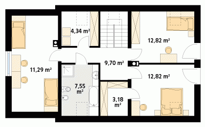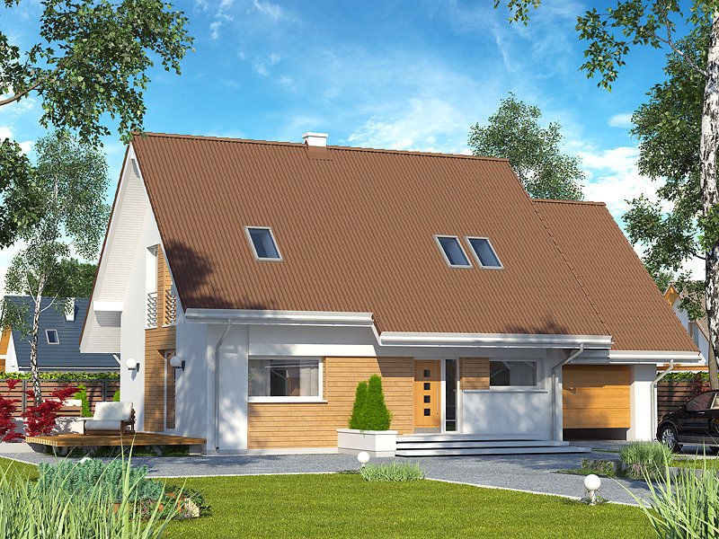 Azuryt jest projektem energooszczędnym, skrojonym na miarę potrzeb 4-osobowej rodziny. Charakteryzuje się prostą bryłą przykrytą dwuspadowym dachem. Stanowi umiejętne połączeniem tradycyjnej bryły z nowoczesną stylistyką. Do budynku przylega jednostanowiskowy garaż ze sporą kotłownią, posiadającą wejście od strony elewacji ogrodowej. Przestrzeń parteru wypełnia salon połączony z aneksem kuchennym - tworząc spójną całość. Dodatkowo na parterze znajduje się pokój/gabinet. Na poddaszu zaprojektowano trzy sypialnie oraz łazienkę. Projekt Azuryt posiada trzy wersje zagospodarowania przestrzeni nad garażem.