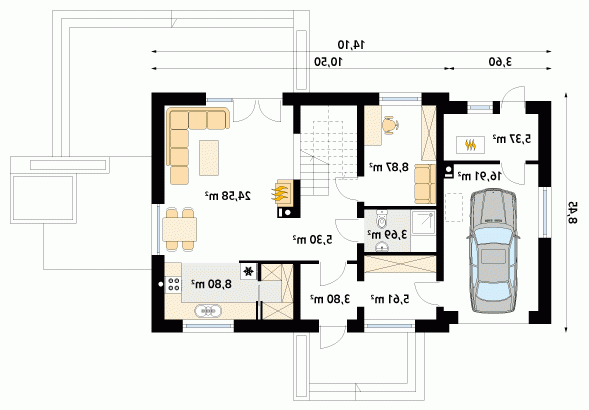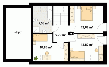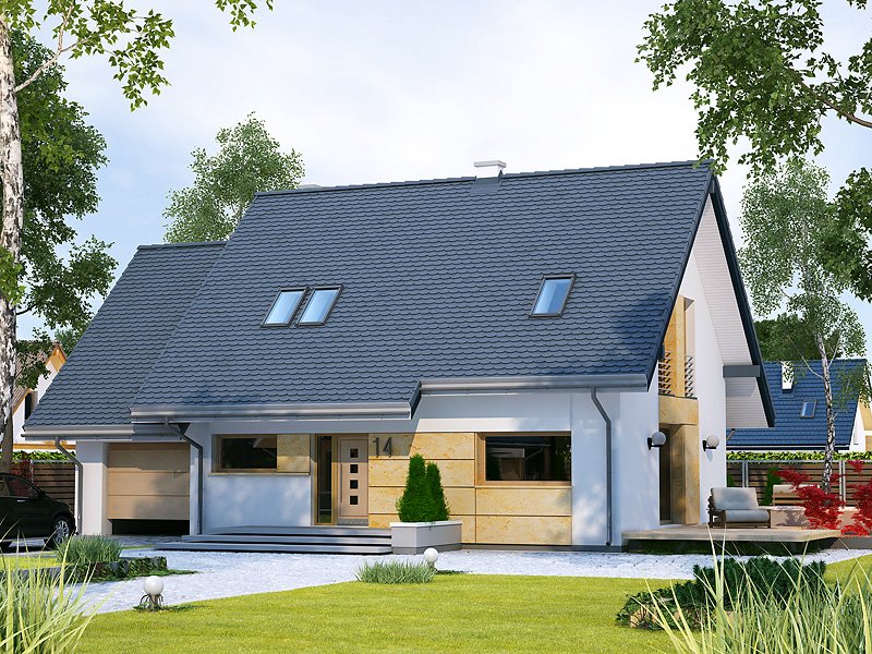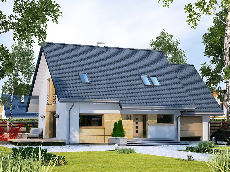 Azuryt jest projektem energooszczędnym, skrojonym na miarę potrzeb 4-osobowej rodziny. Charakteryzuje się prostą bryłą przykrytą dwuspadowym dachem. Stanowi umiejętne połączeniem tradycyjnej bryły z nowoczesną stylistyką. Do budynku przylega jednostanowiskowy garaż ze sporą kotłownią, posiadającą wejście od strony elewacji ogrodowej. Przestrzeń parteru wypełnia salon połączony z aneksem kuchennym - tworząc spójną całość. Dodatkowo na parterze znajduje się pokój/gabinet. Na poddaszu zaprojektowano trzy sypialnie oraz łazienkę. Projekt Azuryt posiada trzy wersje zagospodarowania przestrzeni nad garażem.