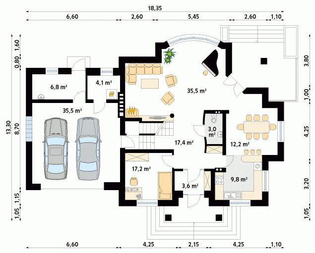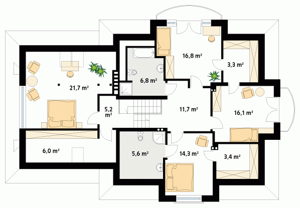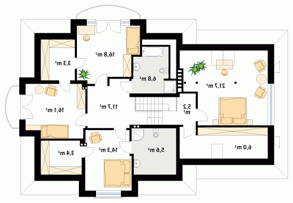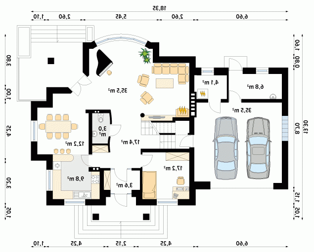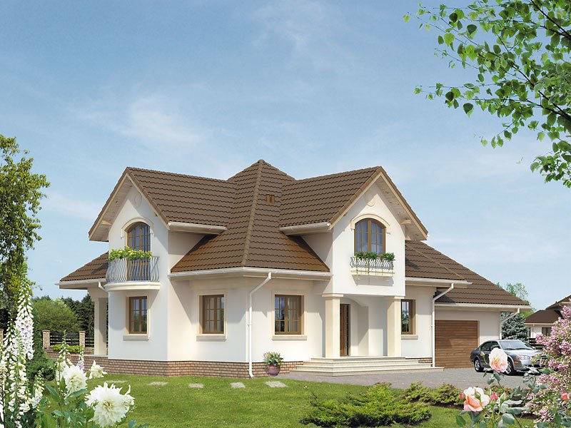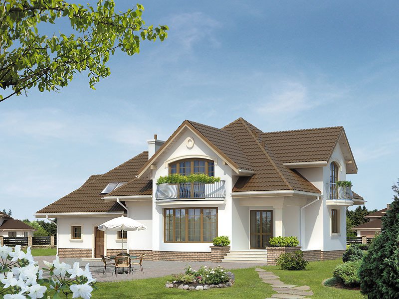 Reprezentacyjny dom o przestronnym wnętrzu. Zaprojektowany dla 4-osobowej rodziny. Przestronny układ funkcjonalny parteru zapewni komfortowe użytkowanie. Na poddaszu zaprojektowano sypialnię rodziców z oddzielną garderobą oraz łazienką.