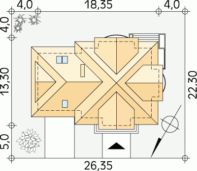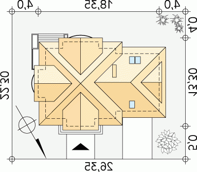 Ściany: 2-warstwowe - pustak ceramiczny + styropian, Stropy: żelbetowe, wylewane, Dach: dachówka ceramiczna, kąt nachylenia 40°