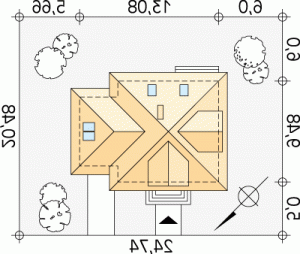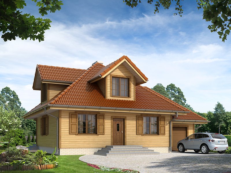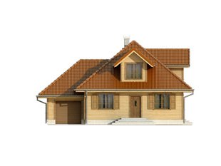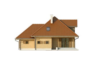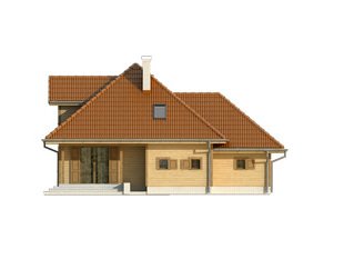 Jednorodzinny budynek mieszkalny, parterowy z użytkowym poddaszem, przeznaczony dla 4-osobowej rodziny. Na parterze przewidziano część dzienną – kuchnię z jadalnią, salon i dodatkowy pokój, oraz część gospodarczą – kotłownię, wc oraz garaż. Na piętrze przewidziano trzy sypialnie oraz łazienkę. Częściowo zadaszony taras.