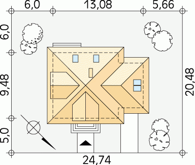 - Min. wymiary działki 24.74x20.48 m