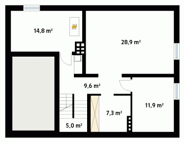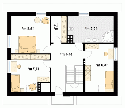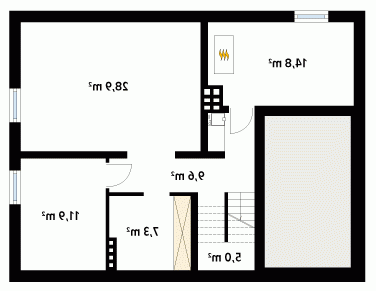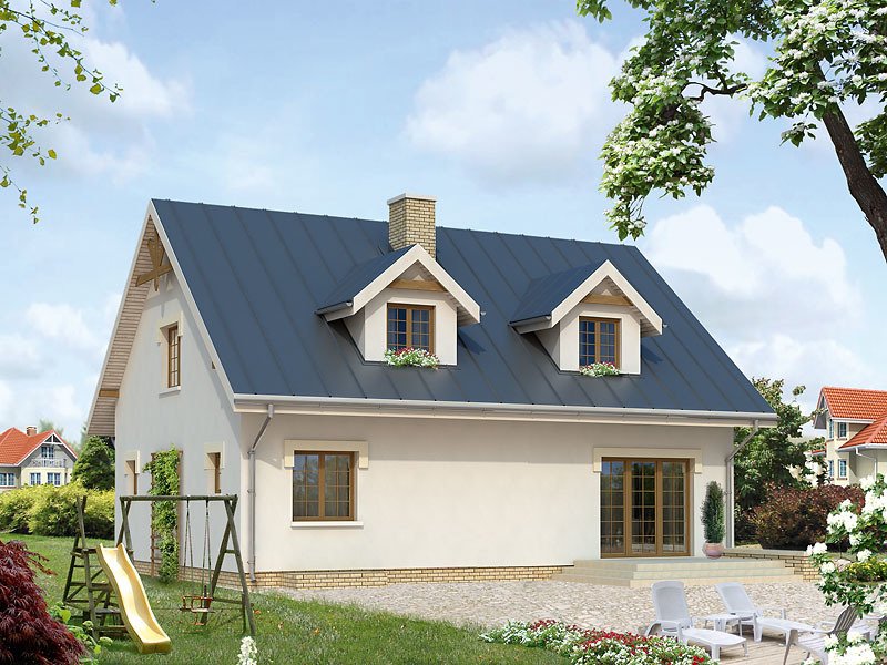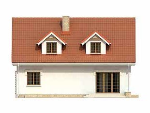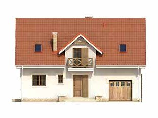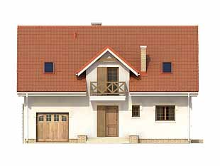 Podpiwniczony dom jednorodzinny z użytkowym poddaszem i garażem w bryle budynku. Na parterze oprócz części dziennej zaprojektowano dodatkowy pokój na sypialnię lub gabinet. Na poddaszu znajdują się trzy sypialnie, łazienka i garderoba.