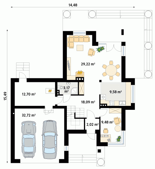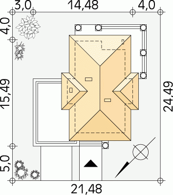 - Min. wymiary działki 21.48x24.49 m