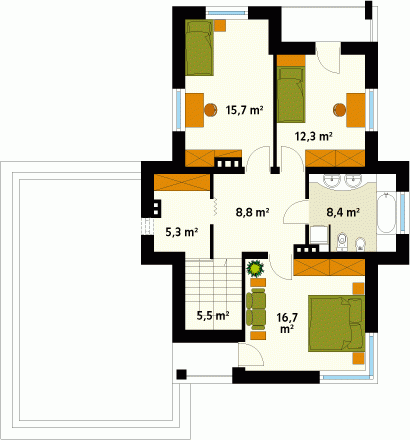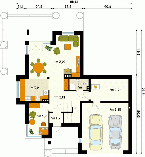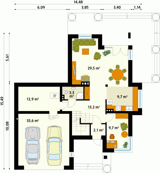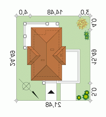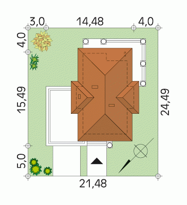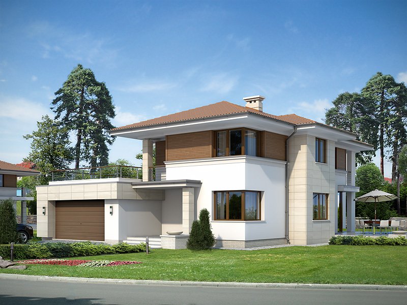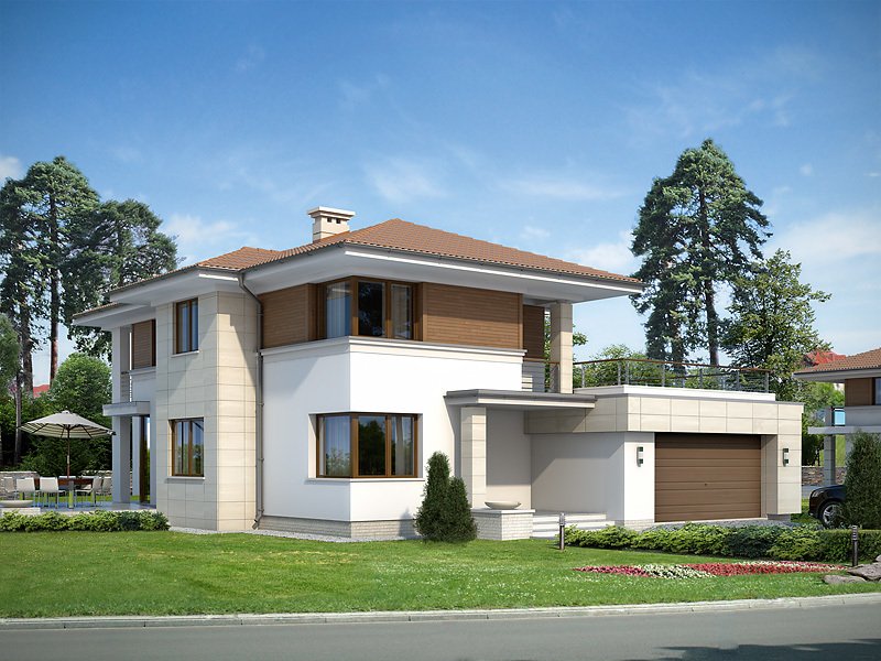 Dom jednorodzinny, dwukondygnacyjny, z dwustanowiskowym garażem, niepodpiwniczony. Na parterze zaprojektowano jednoprzestrzenną część dzienną, łączącą kuchnię, jadalnię i pokój dzienny oraz dodatkowy pokój. Na piętrze znajdują się trzy sypialnie, duża łazienka, garderoba oraz taras dostępny z sypialni. Dwie pełne kondygnacje dają możliwość łatwej aranżacji pomieszczeń także na piętrze. Dom zaprojektowany w technologii Multi-Comfort z zastosowaniem produktów marki Saint-Gobain łączy unikalne właściwości produktów z rozsądną ceną. Standard Multi-Comfort oznacza szereg korzyści, takich jak: niskie koszty ogrzewania, komfort termiczny, akustyczny, dobra jakość powierza, bezpieczeństwo przeciwpożarowe (klasa A1). Wszystko to jest możliwe za sprawą zastosowanych w projekcie sprawdzonych materiałów znanych i cenionych marek: Isover, Weber, Rigips, Glassolutions. Produkty Grupy Saint-Gobain są wytwarzane z naturalnych materiałów i posiadają deklaracje środowiskowe. W procesie eksploatacji budynki zaprojektowane w technologii Multi-Comfort posiadają niewielkie zapotrzebowanie na energię pierwotną. Więcej informacji o domach w standardzie Multi-Comfort: www.multi-comfort.pl