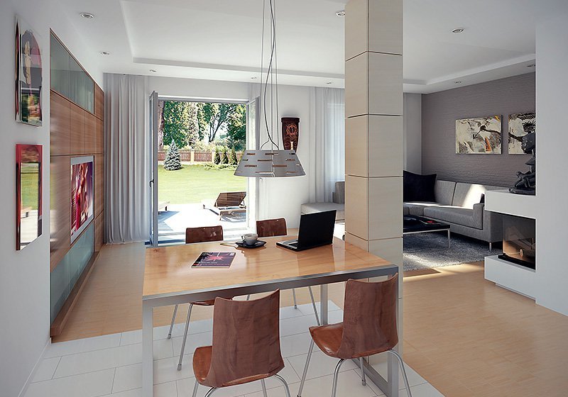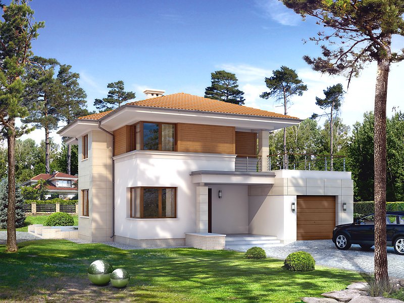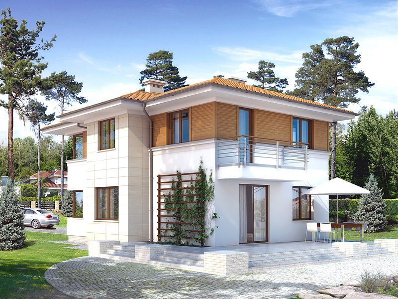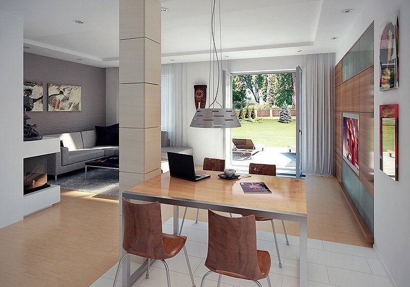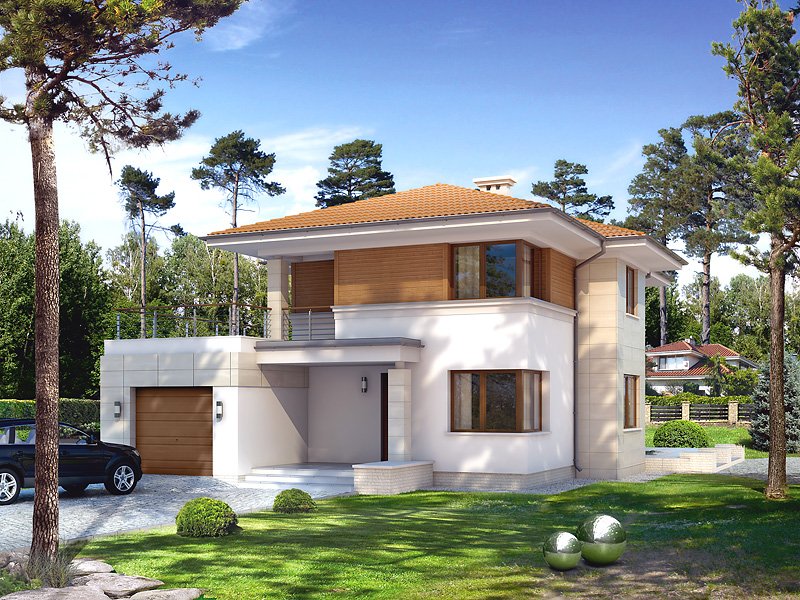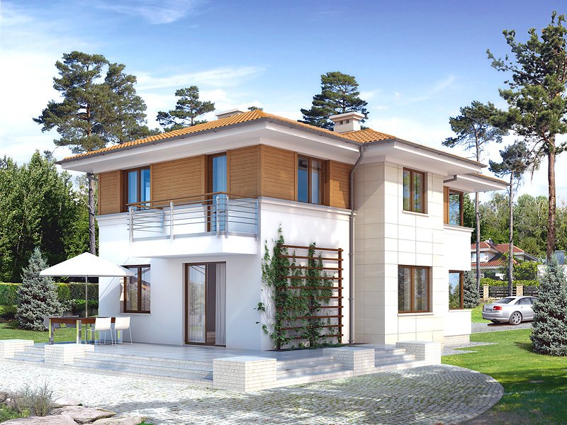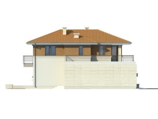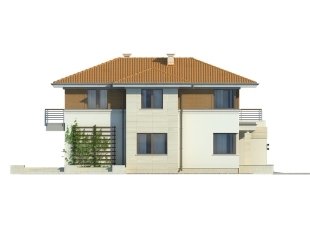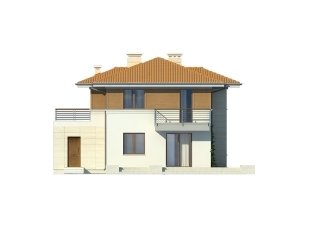Dwukondygnacyjny dom jednorodzinny, niepodpiwniczony, przeznaczony dla 4 – 5-osobowej rodziny. Na parterze obok przestronnej, jednoczęściowej części dziennej zaprojektowano dodatkowy pokój oraz część gospodarczą. Pełna druga kondygnacja, na której przewidziano trzy sypialnie, garderobę oraz łazienkę, zapewnia komfort mieszkania. Elegancka, prosta bryła.